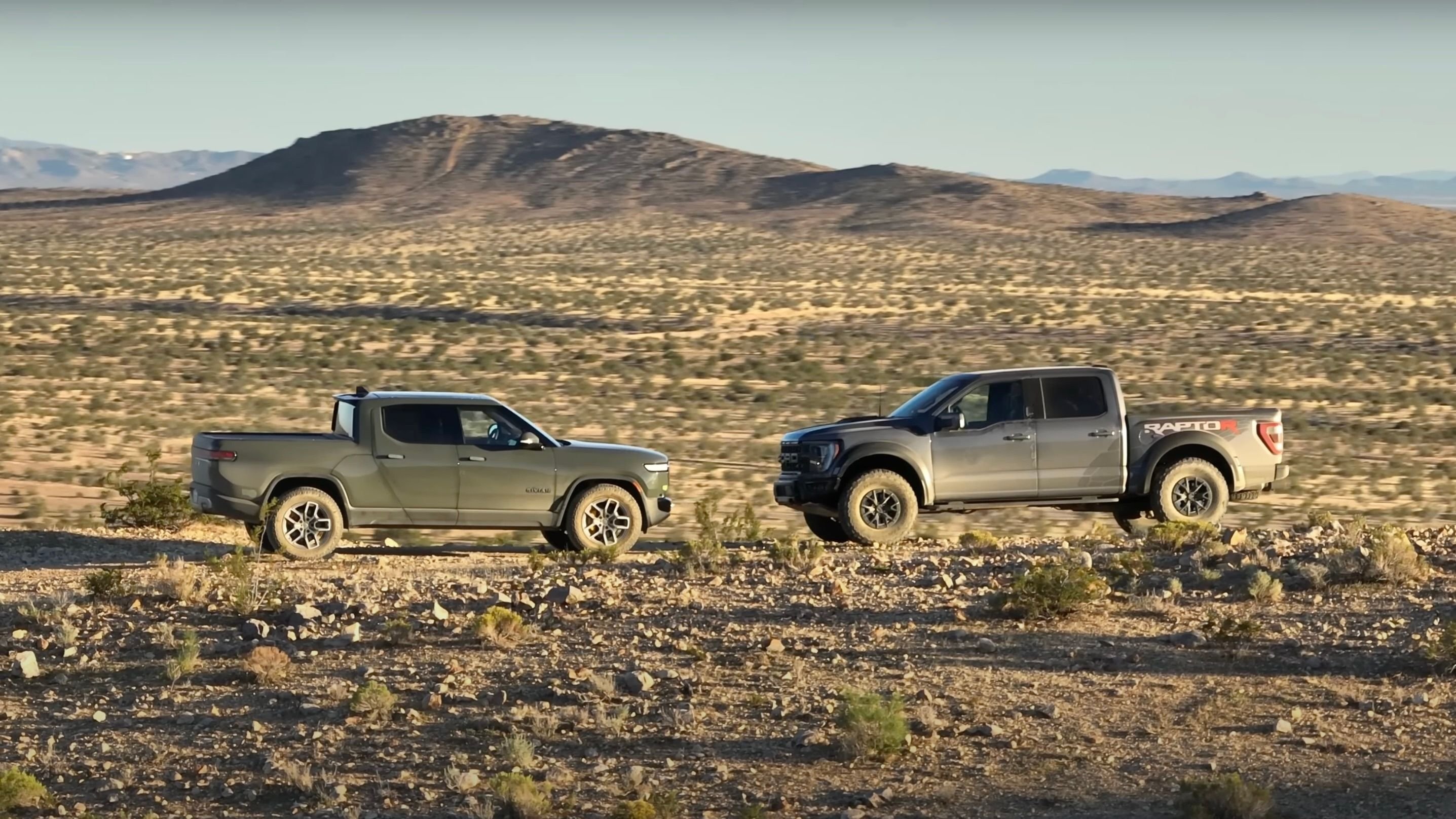 Watch the Ford F-150 Raptor R and Rivian R1T do battle off the pavement.