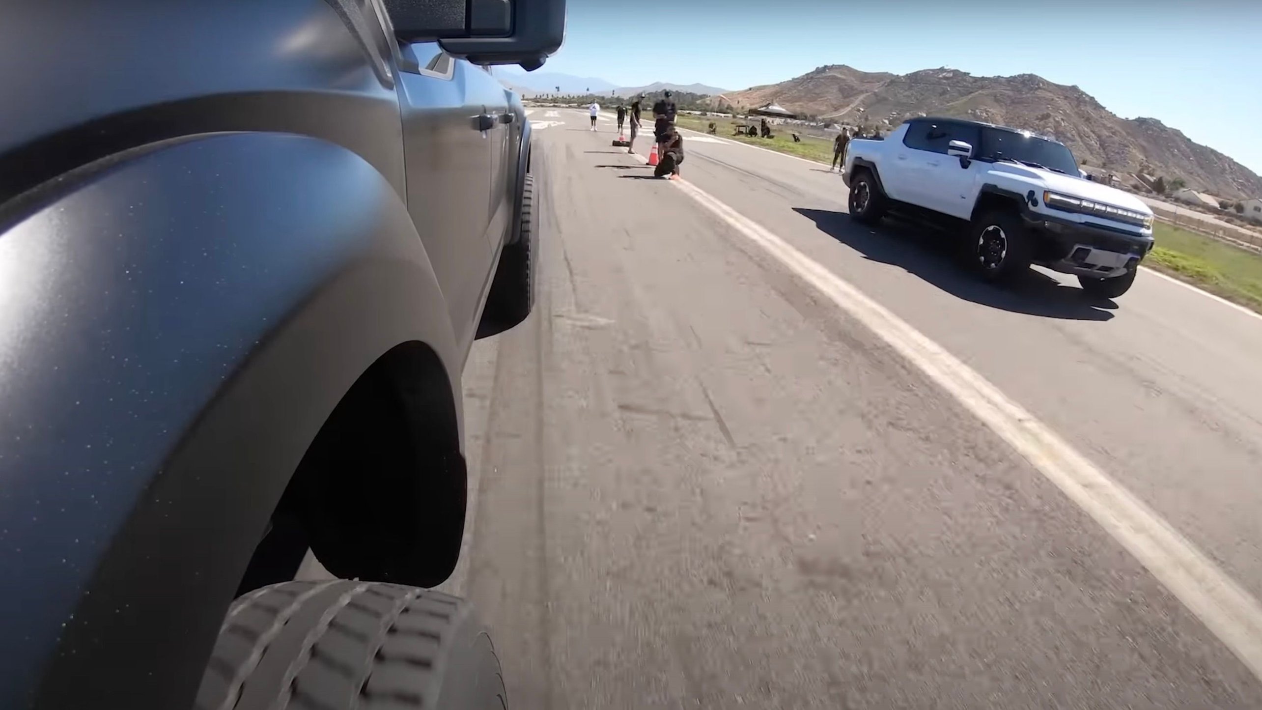 That leaves the Hummer EV as the victor, but the pair decide to try a third race just for fun, this time giving the Raptor R more of a chance in a longer 1,500-foot drag race with the Blue Oval hauler getting a three-truck-length head start. That proves to be enough to secure a win for the Raptor R, in fact.