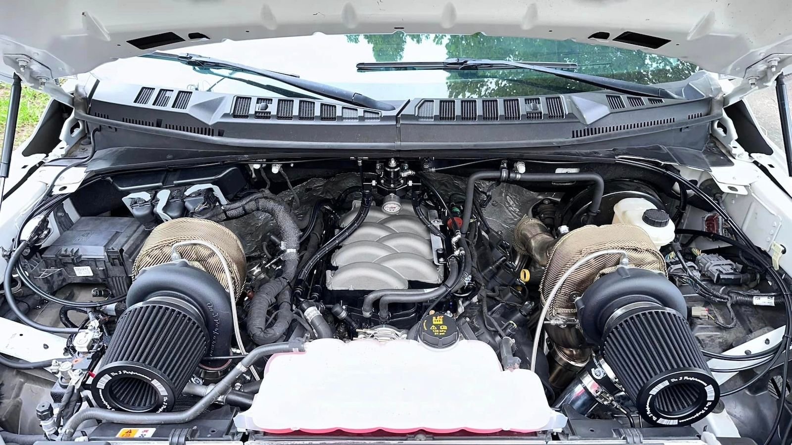 Kinney originally intended to make this F-150 a 10-second daily driver and proceeded to slap a ProCharger on it. However, the need for speed only grew, as it usually does, but a VMP supercharger swap only lasted for a couple of months as it was just generating too much heat. That part also wound up breaking the Coyote's crankshaft, all of which prompted Kinney to just give up on superchargers and go with a pair of turbos instead.