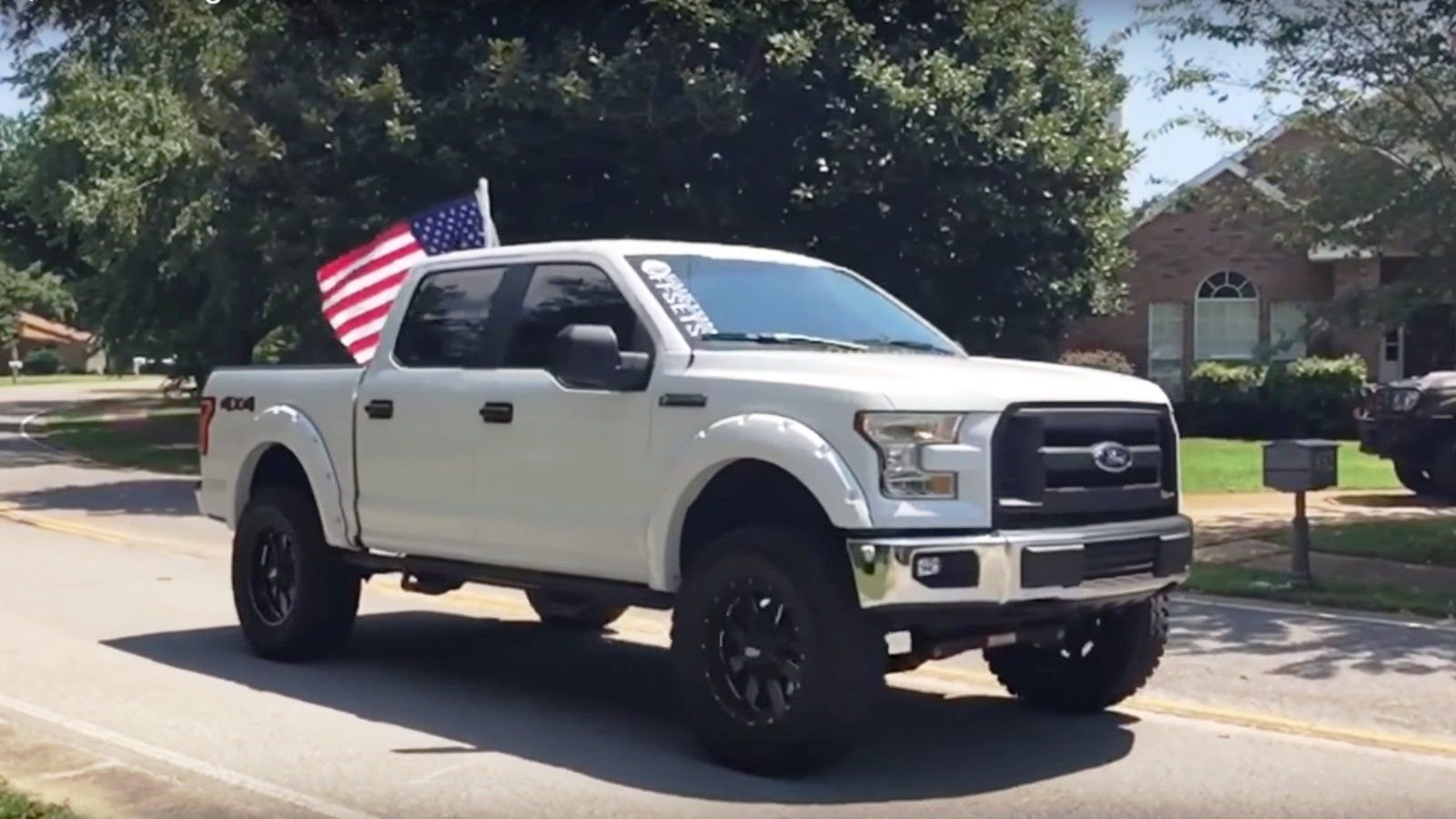 This may look like a small flag, but that's just because this truck is pretty big. This is actually a full sized flag you'd hang outside your house, but a Ford Super Crew has tons of room inside and out to handle the duty.