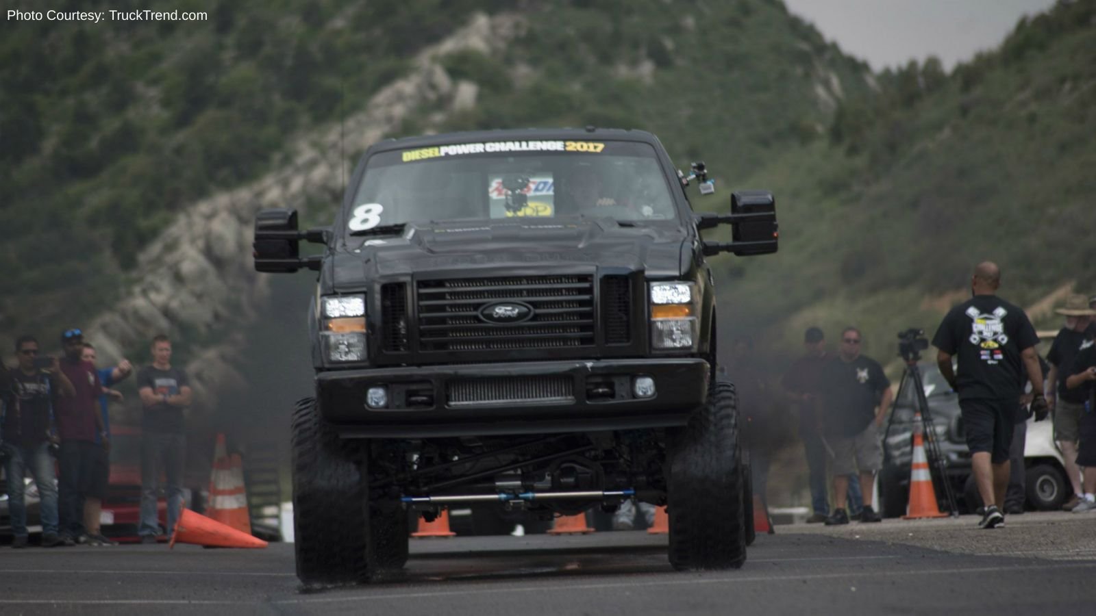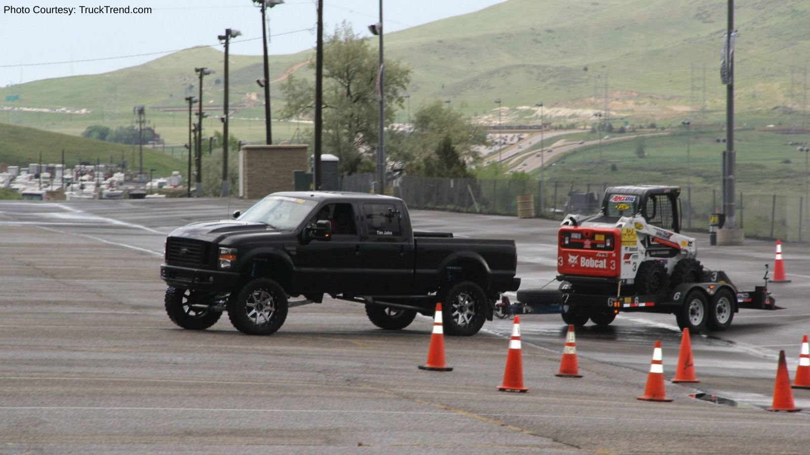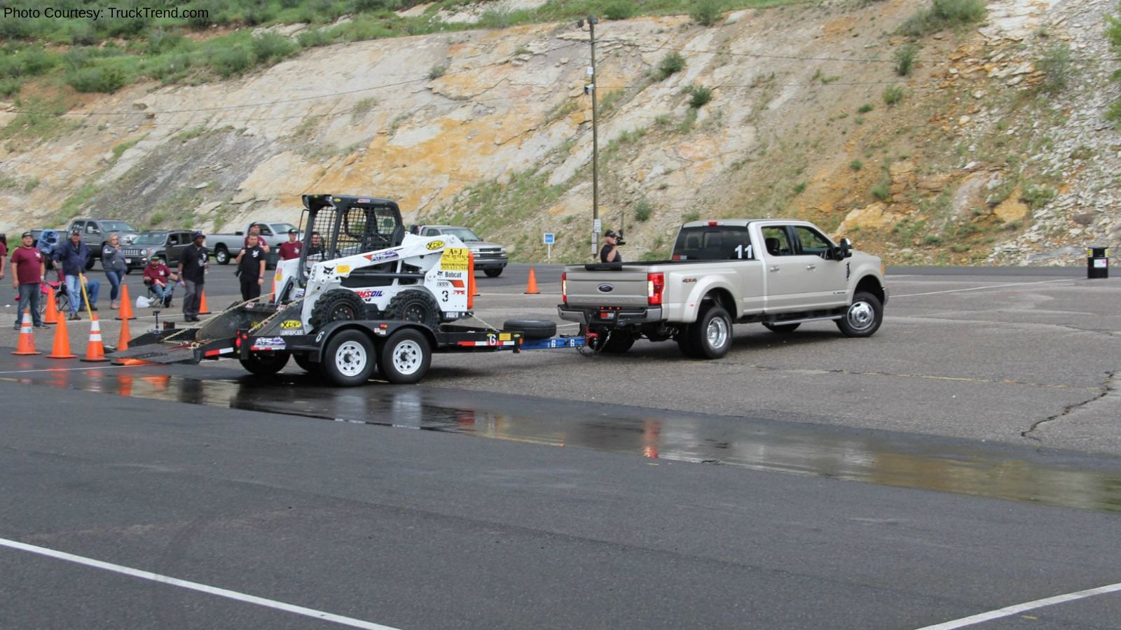 The Diesel Power Challenge event was designed by Truck Trend editor Jason Gonderman and racing/towing expert Brandon Wright. Wright got to demonstrate what was expected in a brand new, 2017 F-350, so we'd say he's a pretty lucky guy. The course was set up in a parking lot at Bandimere Speedway in Morrison, Colorado, and of course, it had to rain a little just to make interesting.