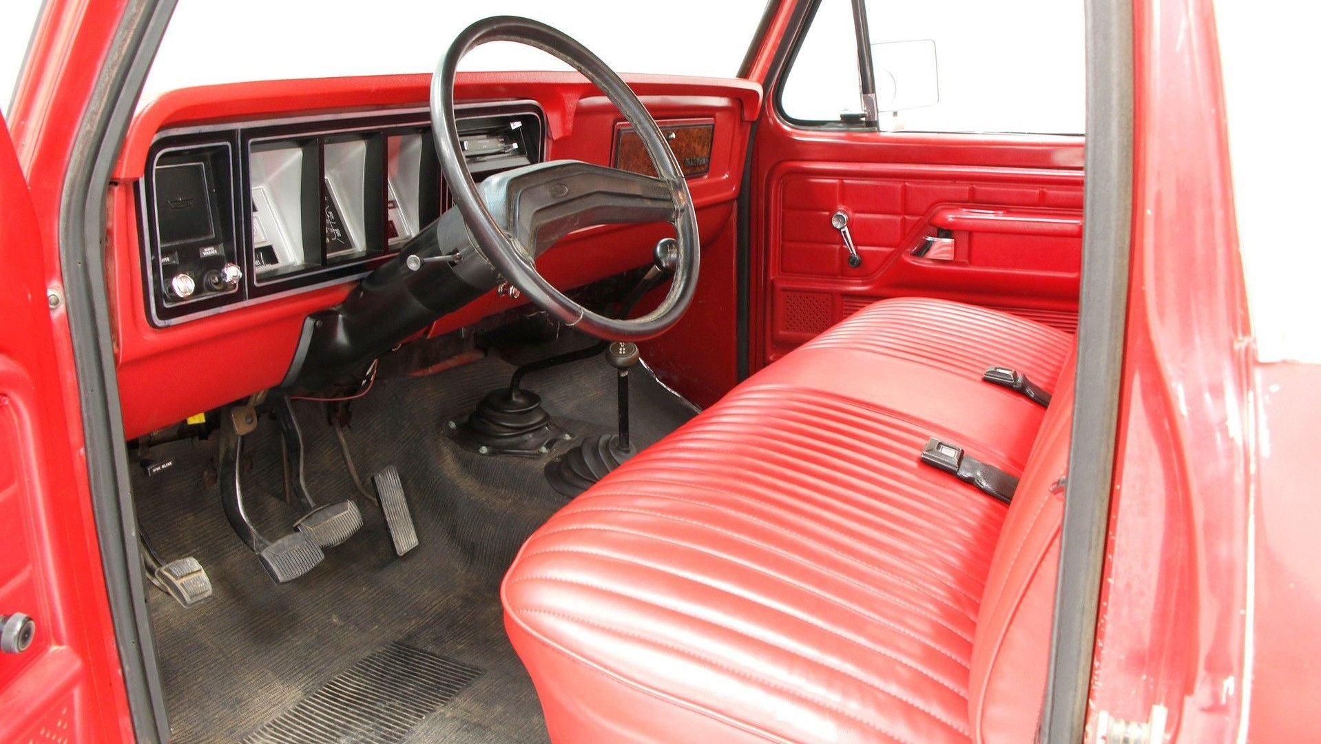 This F-150 spent lots of time on a ranch in Wyoming, which isn't really a surprise for a '70s long bed, four-wheel-drive Ford. The red and white combo is original, though the seller believes that it was repainted at some point. Regardless, the sun and weather have taken its toll and left some patina here and there.
