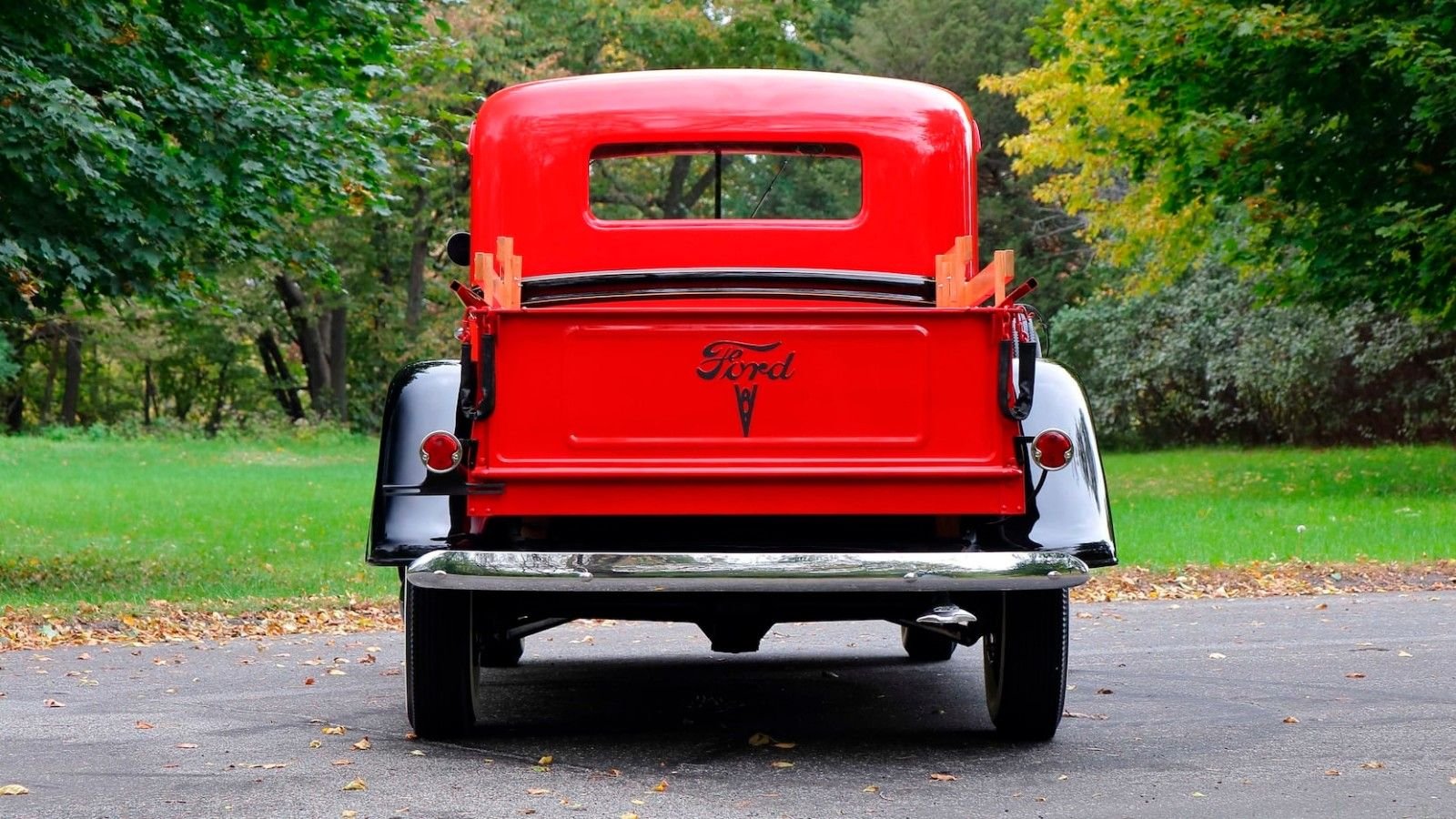 Perfect bodywork is a signature sign of a quality restoration, and this Ford pickup certainly has some straight panels. They're also covered in a classic combination of red and black, which only makes it even more attractive. Perhaps more importantly, the color combo is correct given this Ford's Deluxe trim.