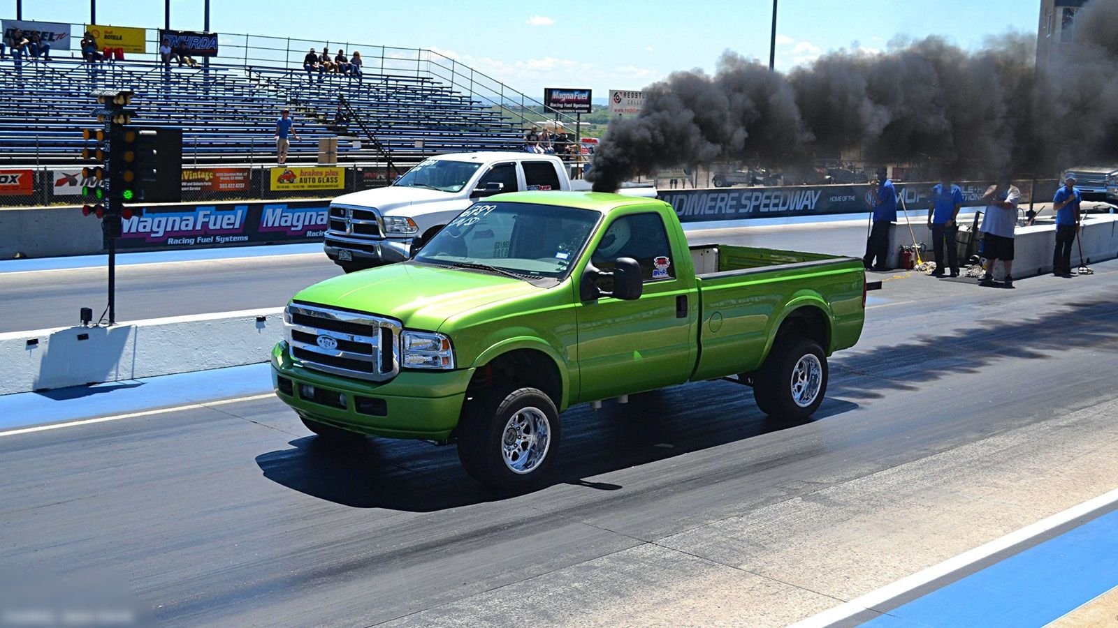 Goblin Green 2006 F-250 is a Demon on the Drag Strip