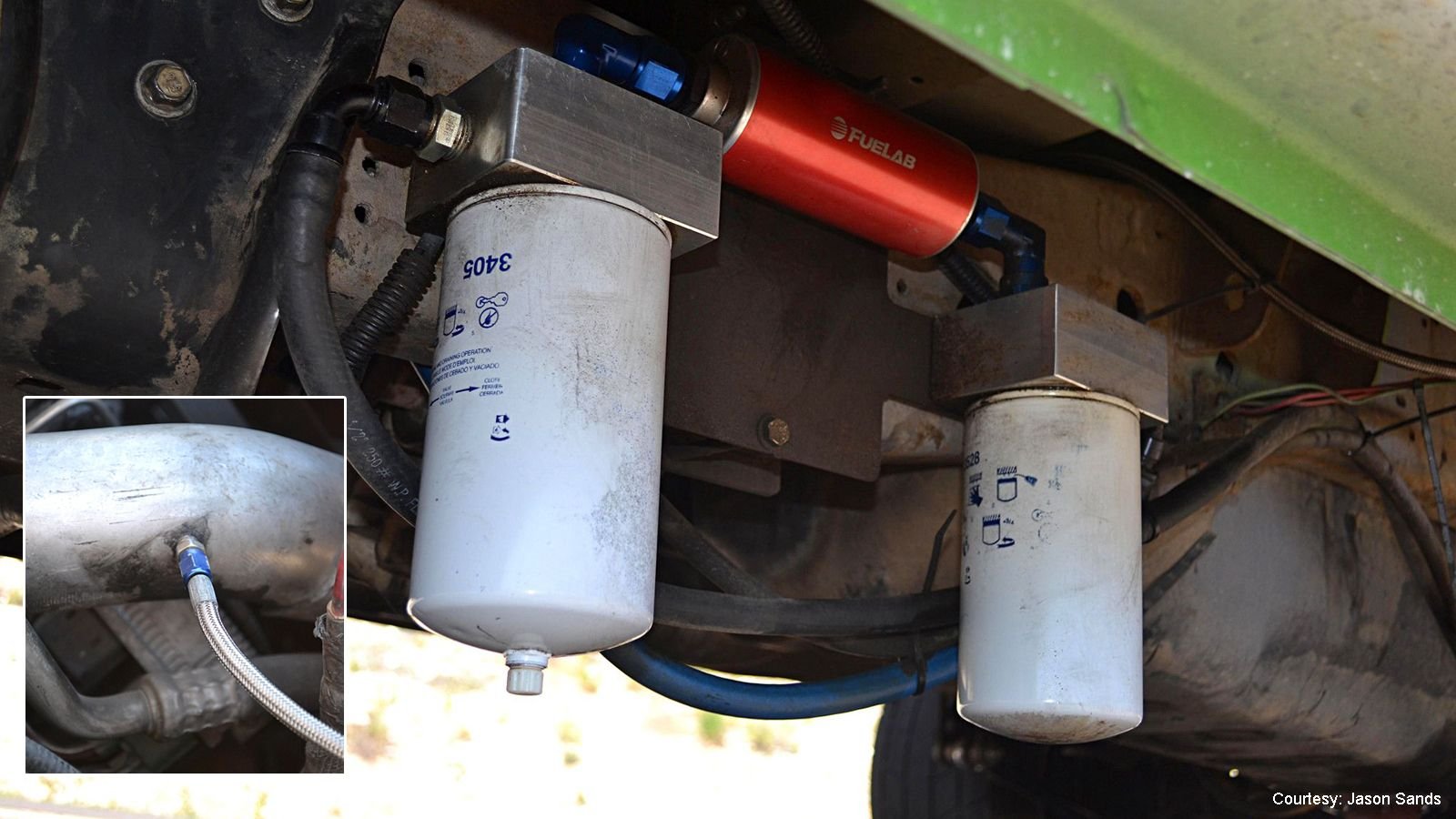 With all the extra air coming in, the next order of business was upgrading the fuel delivery system. Ross went to work swapping his injectors out for Holder’s Diesel Performance 230cc units with 100 percent over nozzles, and installing a regulated return kit from Power Stroke Enginuities. A Thumper II high-pressure oil pump from River City Diesel keeps the turbo spinning smoothly. Ross’ own Flyin’ Diesel Performance shop built a fuel delivery system utilizing a Fuelab lift pump, and dual filters, lines, and filter blocks. The F-250 sports a single-stage nitrous system; Ross tweaks the jetting based on elevation and weather conditions on a track day.