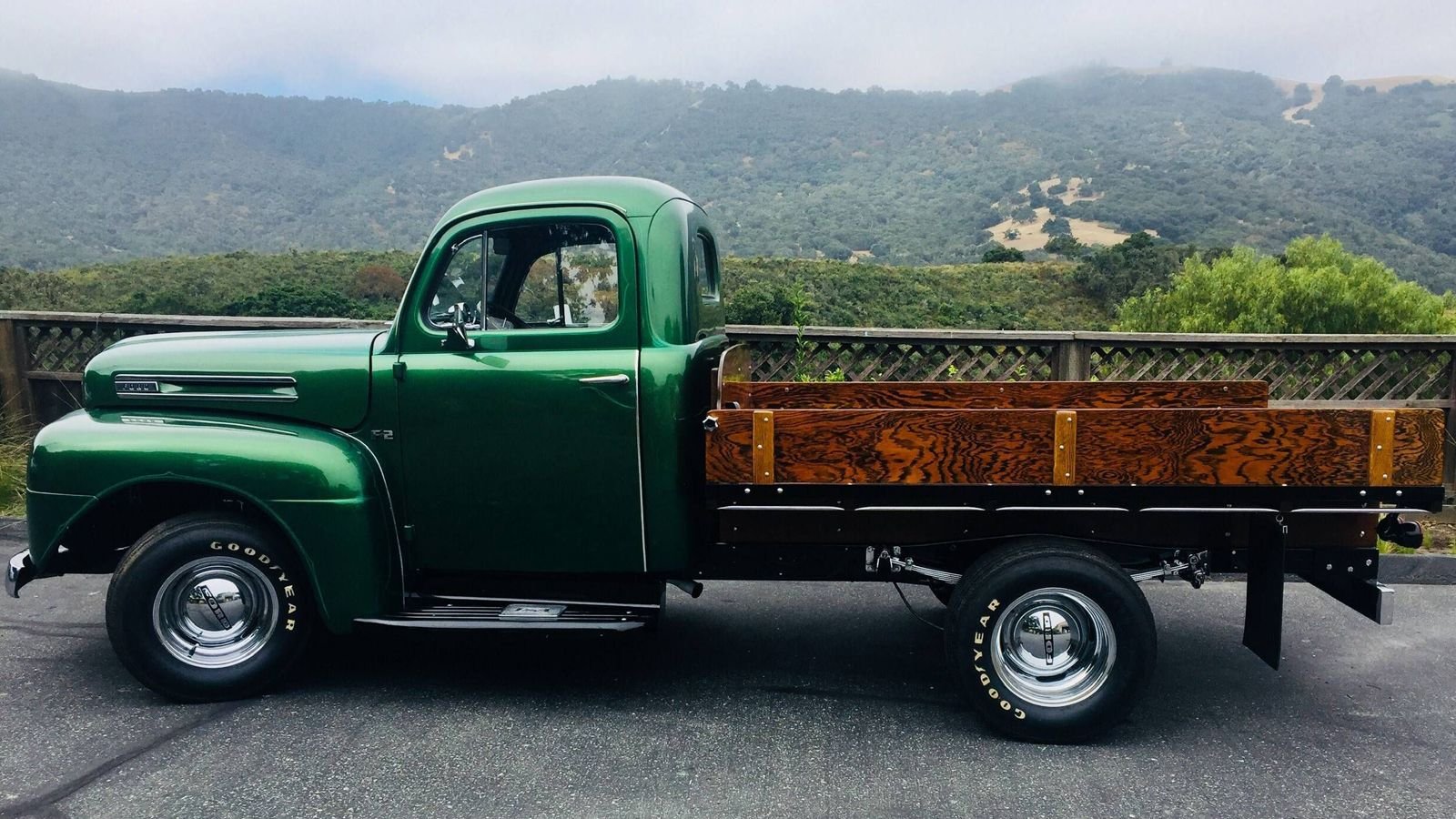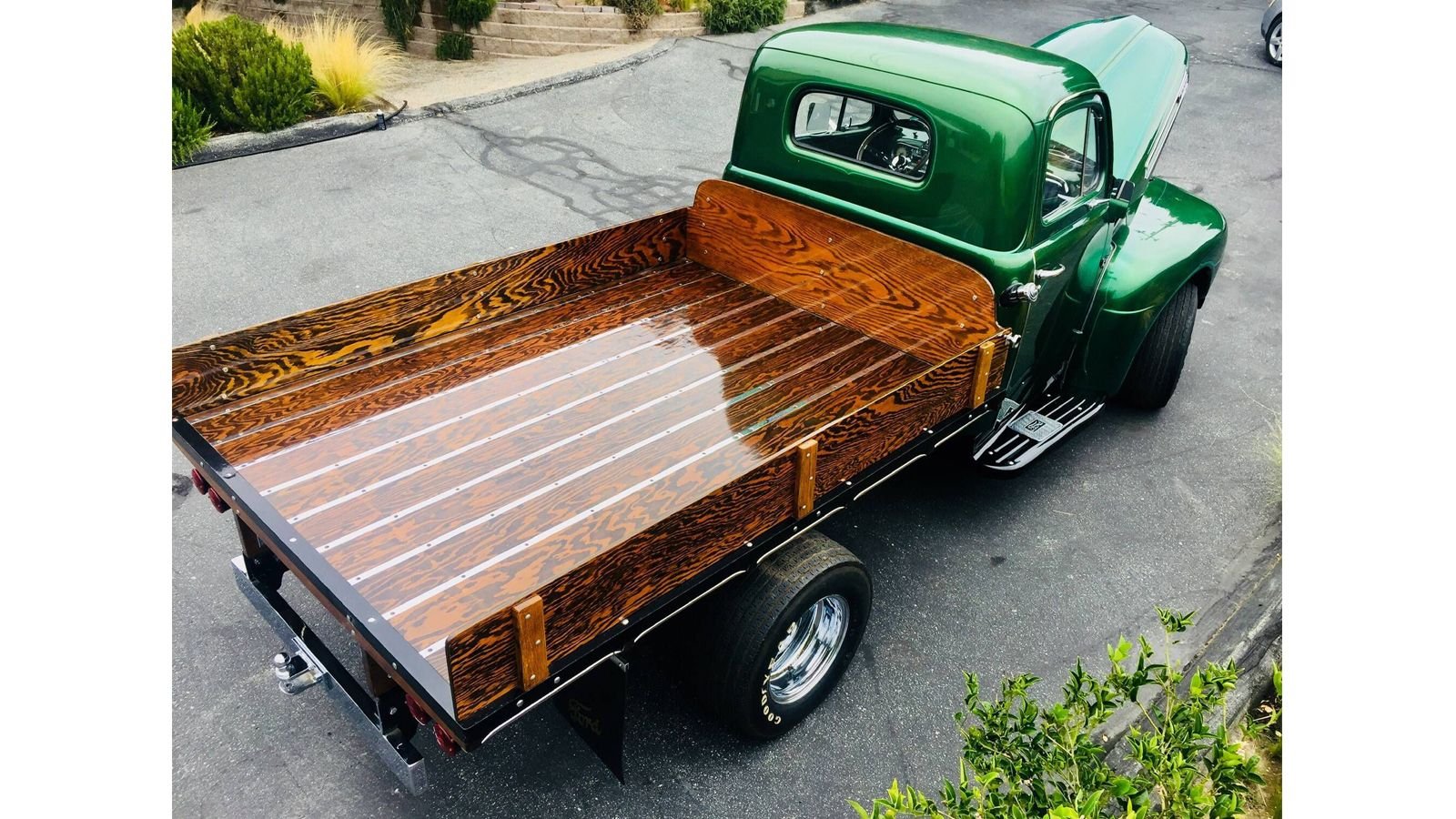We came across this fascinating, "award-winning" 1948 Ford up for auction on Hemmings. At first glance, the truck might catch the eye of passers-by for its gorgeous, deep green paint, or the beautifully crafted wood grain bed finished to a mirror-like shine. But what makes this particular restomod truly unique is what lies under the hood.
