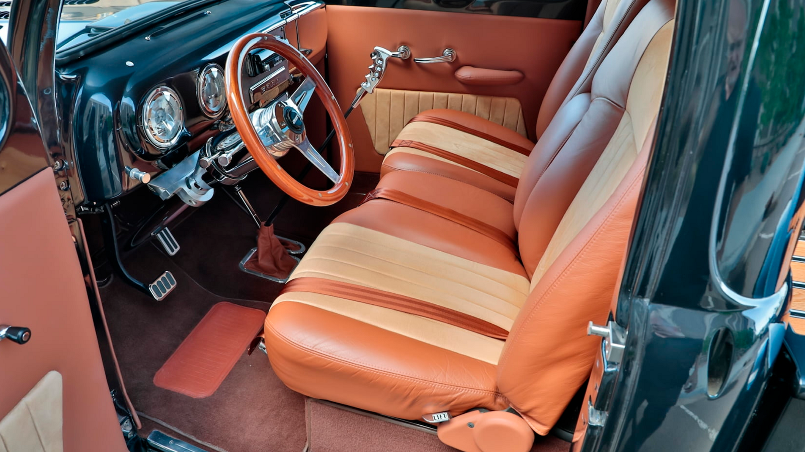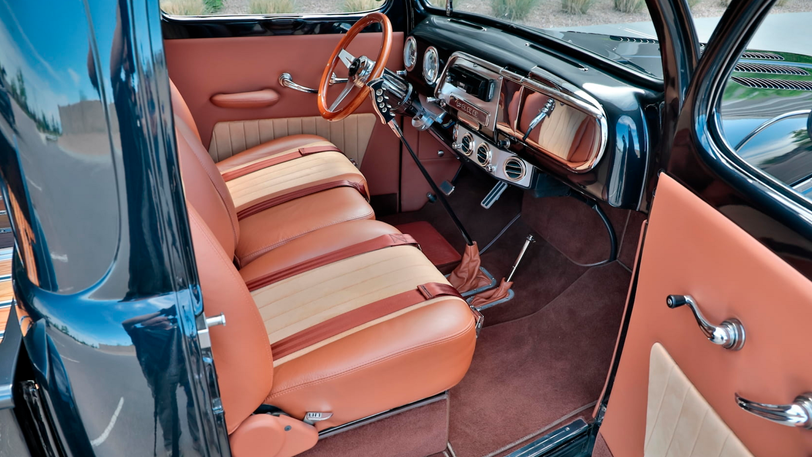 As tough as the outside of this pickup looks, the inside offers little more than supple comfort. The two-tone tan leather interior certainly looks great, and we're betting that it's way comfier than the original vinyl bench seat.