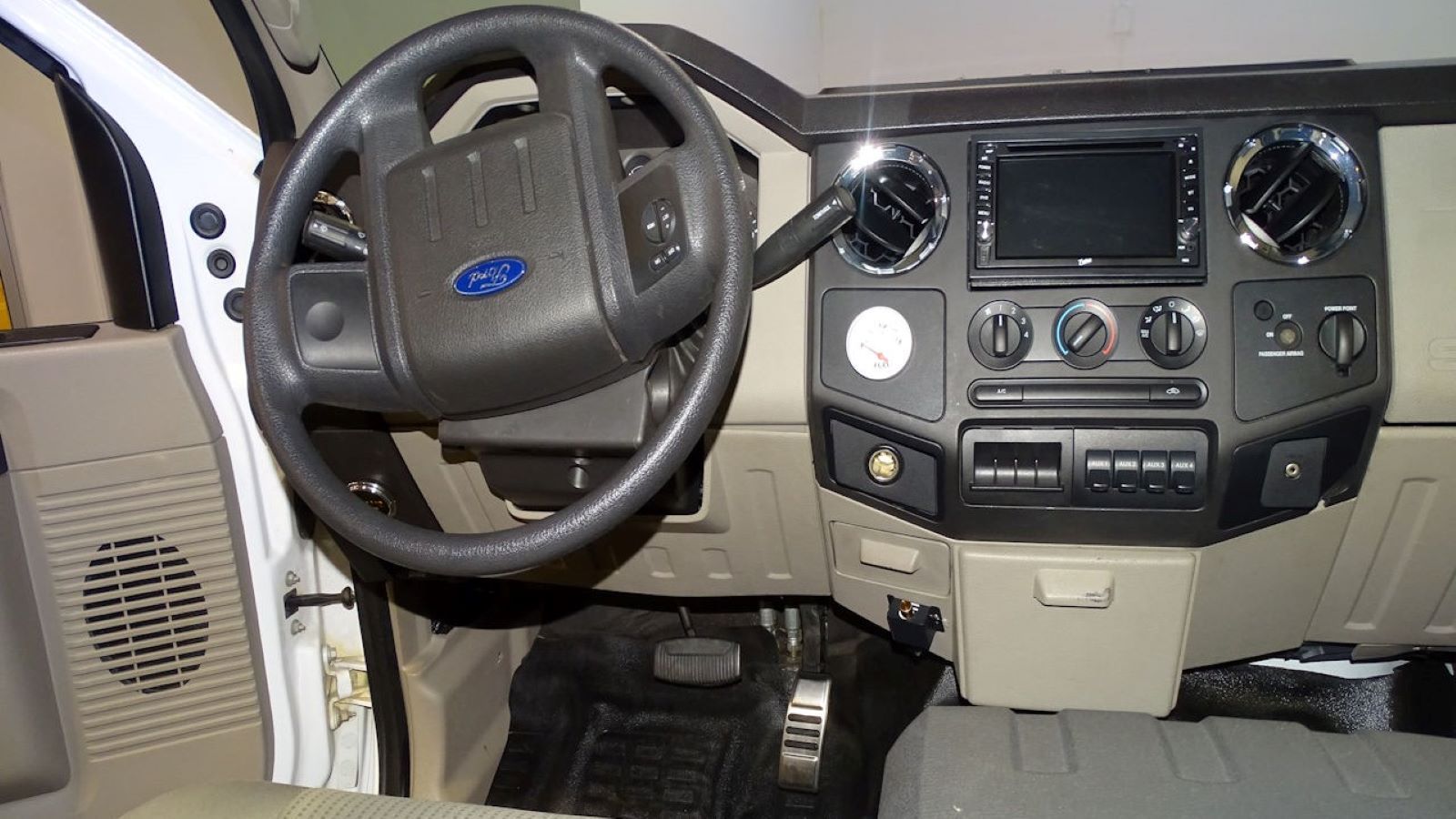 Interestingly, however, the interior is not some gutted job you'd typically see in a truck like this. Instead, the cabin is pretty much stock and retains all of its factory amenities like air conditioning, a backup camera (which you'll be glad you have), and the original CD/DVD stereo.