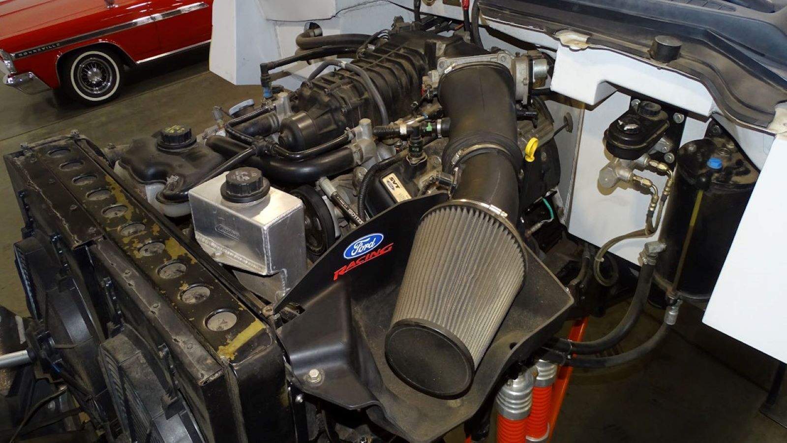 This beast is not powered by some SD-based engine, however, but rather a supercharged 5.4-liter V8 taken from a prior-gen Mustang Shelby GT500. Packing an Eaton M122H roots-type supercharger up top and a Ford Racing Power Pack tune, the mill churns out over 600 horsepower with ease, which it sends to the wheels via a 2-speed transmission.