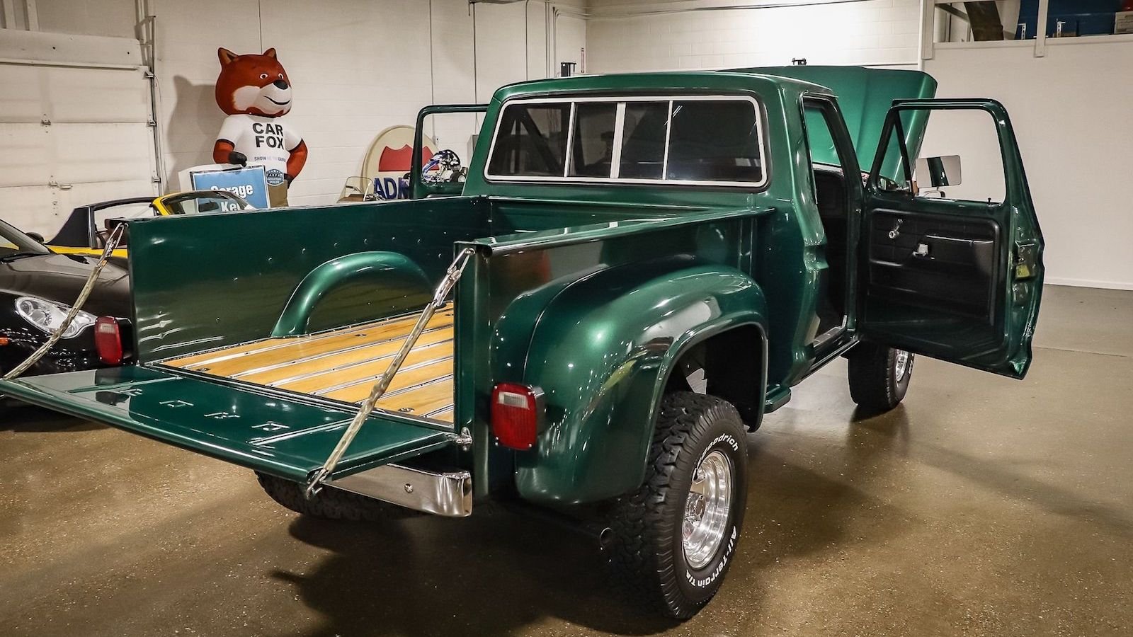 The "stubby" bed has been retrofitted with a smart looking and durable wood-paneling that plays warmly off the truck's metallic green paint finish. 1978 Ford F-150's were made available in over fifty different color options ranging from "Wind Blue" to "Chamois" brown and "Tangerine" orange. The rainbow of color options makes sense as the truck debuted in a period where automobile manufacturers and marketers were just beginning to tap the potential of advertising automobiles with a focus on personal expression.