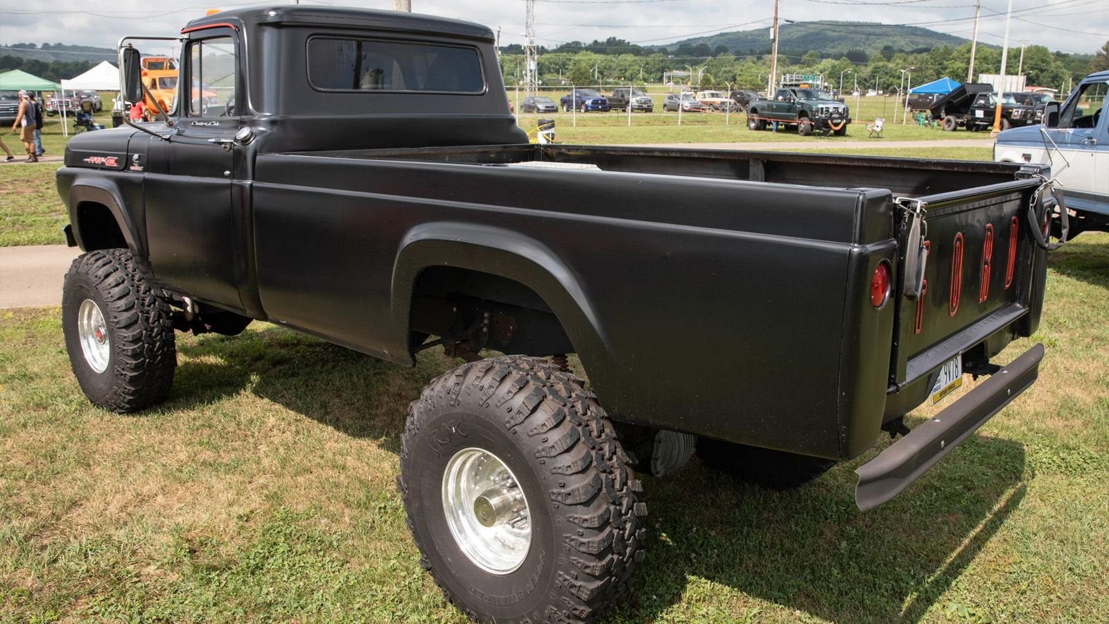 Bucking the current trend of short box conversions, this 1959 F-350 heads the opposite direction—in more ways than one. Horizontally, the F-350 sports a curiously long bed. Going vertical, the sheet metal rides on a lifted 1976 Highboy chassis. Spotted at the 4-Wheel Jamboree Nationals in Bloomsburg, Pennsylvania, the big rig was built for everyday use—despite putting on an impressive show!