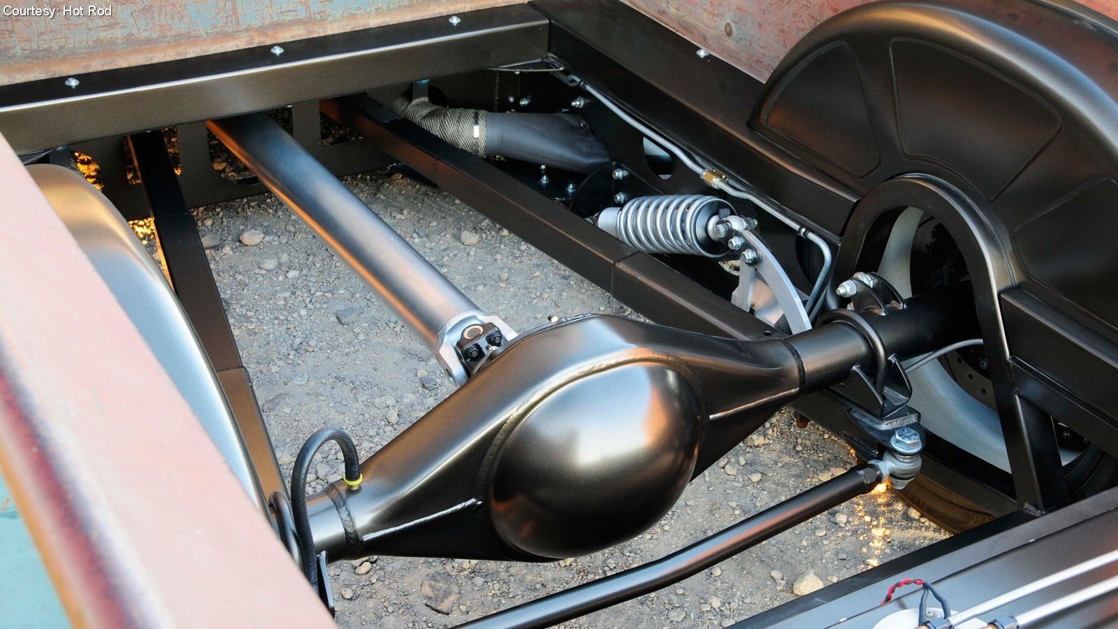 To that substantial base, Dynamic Rides fitted No Limit’s trailing arms in the rear, connected to cantilever-style links and RideTech billet coilover shocks, and located by a Panhard bar. The set-up suspends a Currie Enterprises 9-inch rear end with 4.10:1 gears, supporting 31-spline axles. Up front a full No Limit Wide Ride IFS is fitted, featuring No Limit's tubular upper and lower control arms, Z.G. 2-inch drop spindles, a Dynamic Rides splined anti-sway bar—and more RideTech billet coilover shocks. Braking is by Wilwood power master cylinder, 12.88-inch rotors and six-piston calipers up front, and 12.19-inch rotors with four-piston calipers out back. The biggest external clue to the decidedly not-old nature of the truck's running gear has to be the handsomely understated Forgeline Model RB3C wheels, wearing Toyo Model R888 tires.