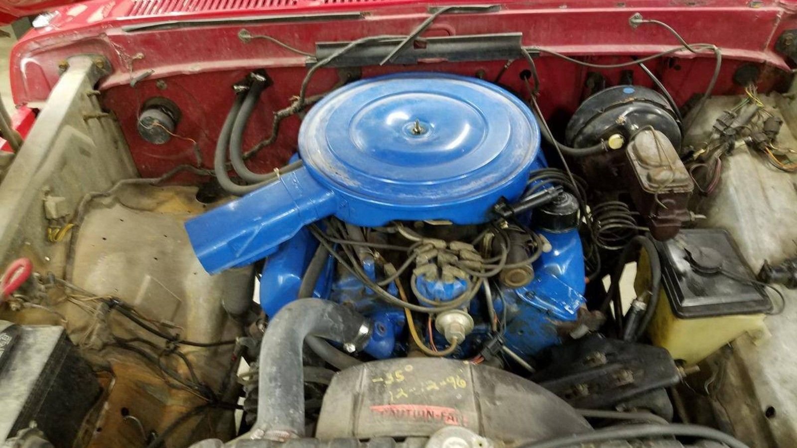 The only real sign that this truck's been driven anywhere lies under the hood. There is a good bit of dirt here, which is surprising. But it's nothing that can't easily be corrected.