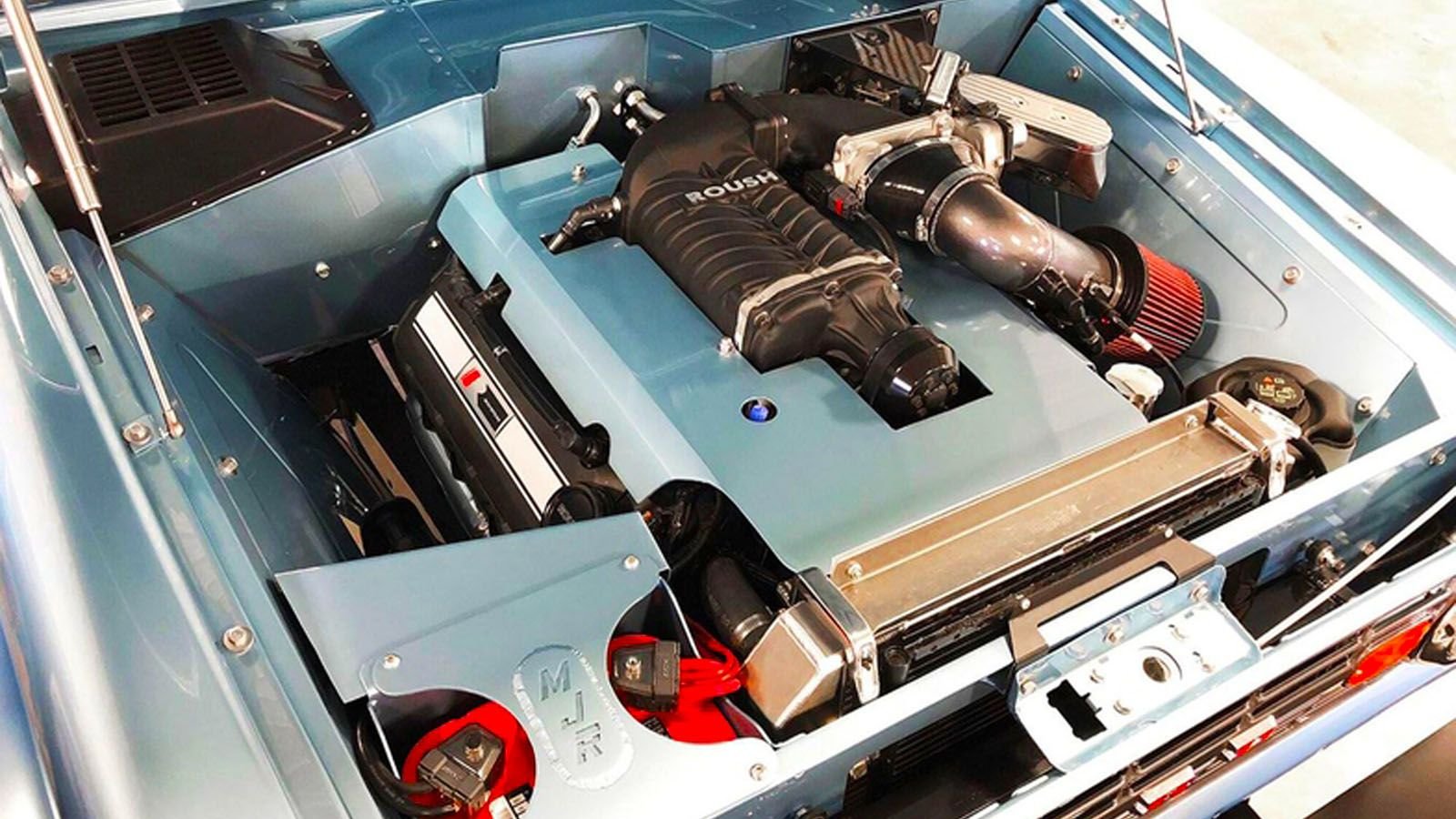 But this Bronco is not just about classic looks meet modern convenience. If you take a look under the hood you will find that Roush Performance integrated a Supercharged Coyote 5.0L 600hp motor. That kind of power meant that other components needed to be changed, so the brothers added an Advance Adapters Atlas II Transfer Case and Currie industries contributed much stronger axles. They also added new driveshafts, locking hubs, and differentials. Powertrain Control Solutions mounted the dash selector and EPAS added the electronic power steering.