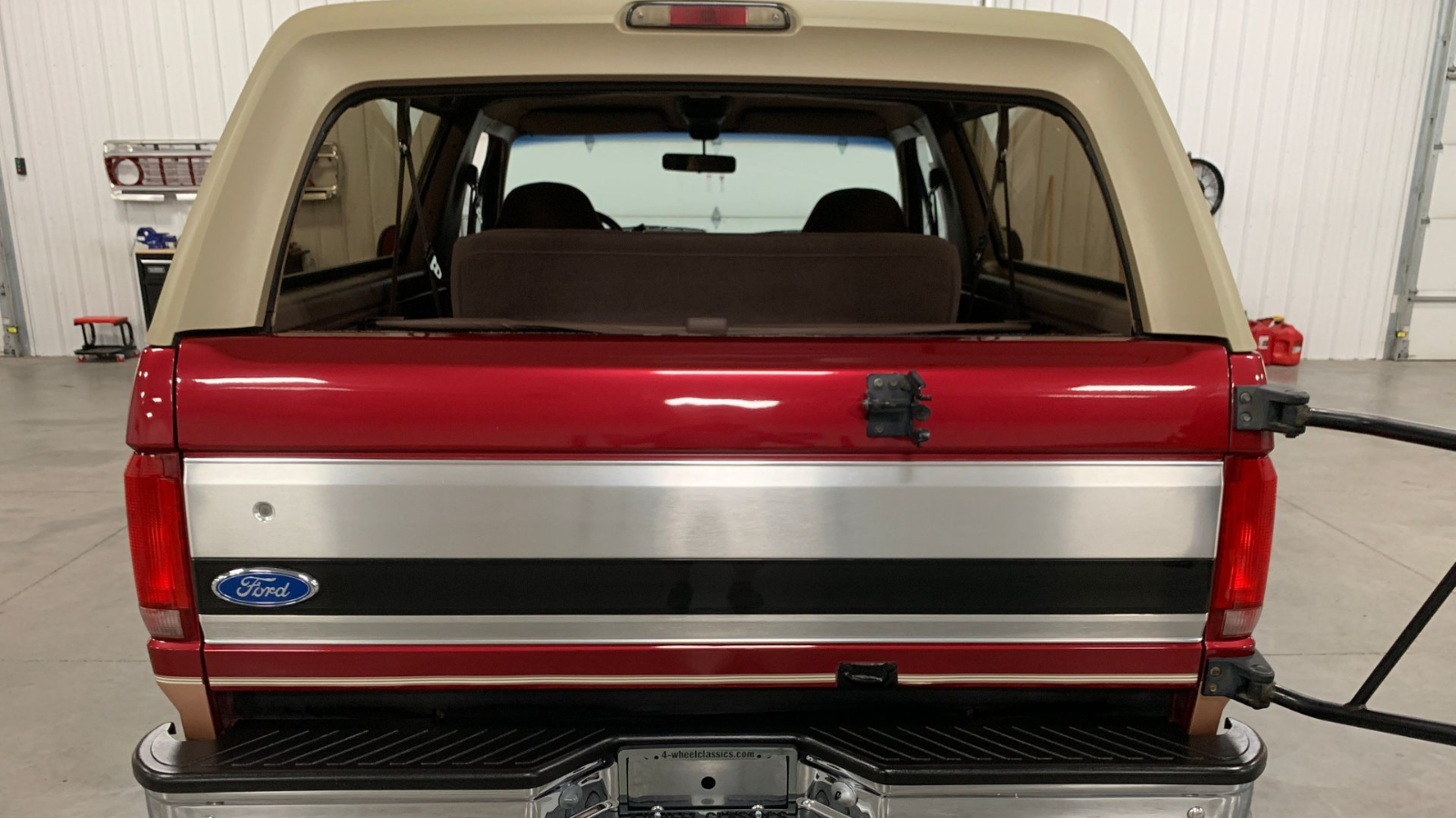 This ’94 Bauer Bronco has just 93,000 original miles, and thanks to storage in a climate-controlled garage, it looks like it just rolled off the lot. The truck’s chrome moldings really shine, particularly where they juxtapose the tan paint of the bottom trim, a color dubbed “Light Santa Fe.” True Eddie Bauer enthusiasts will appreciate the fact that the original, Bauer-branded spare tire cover is still with the vehicle.