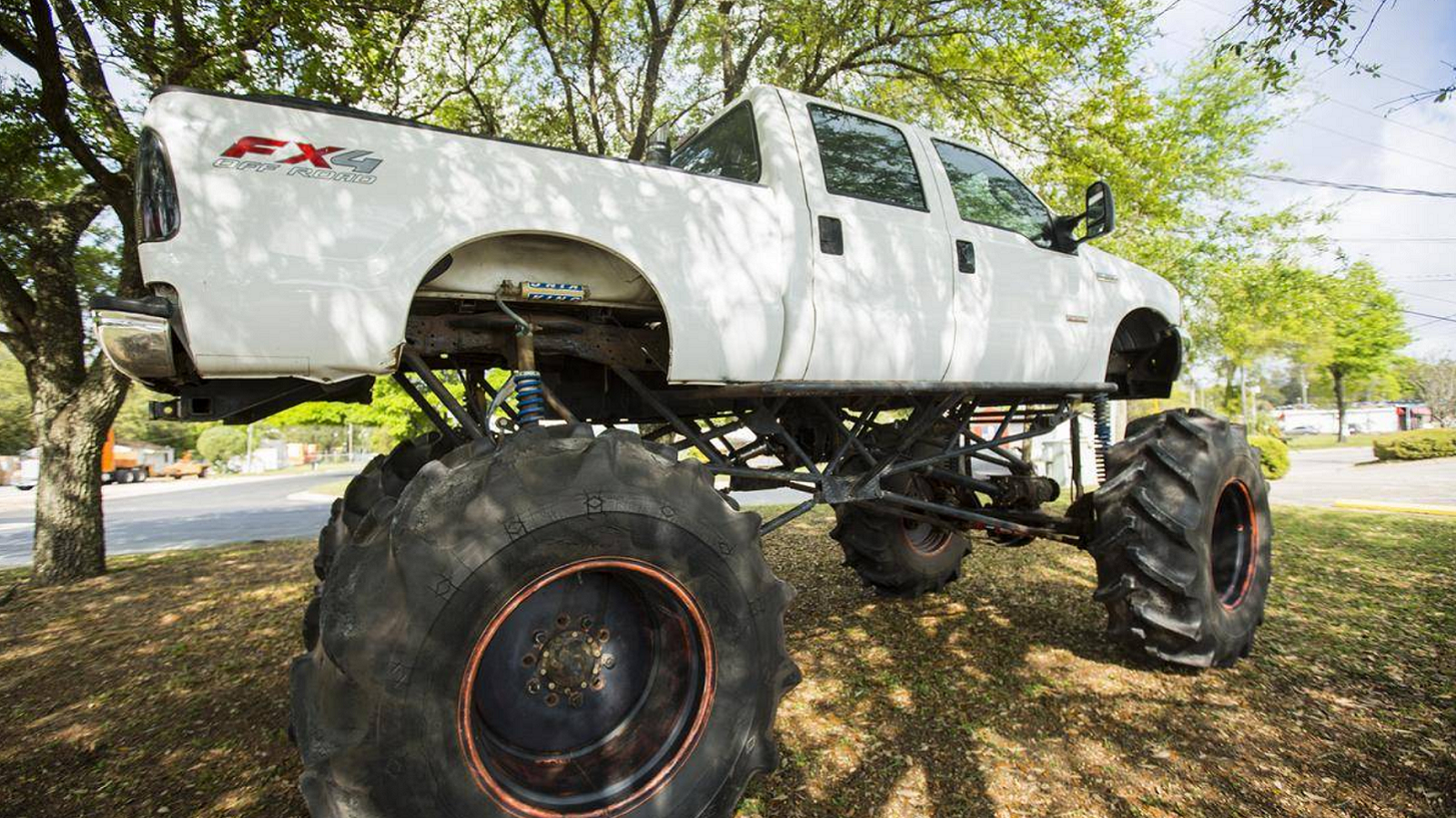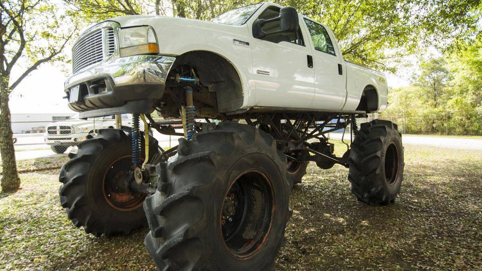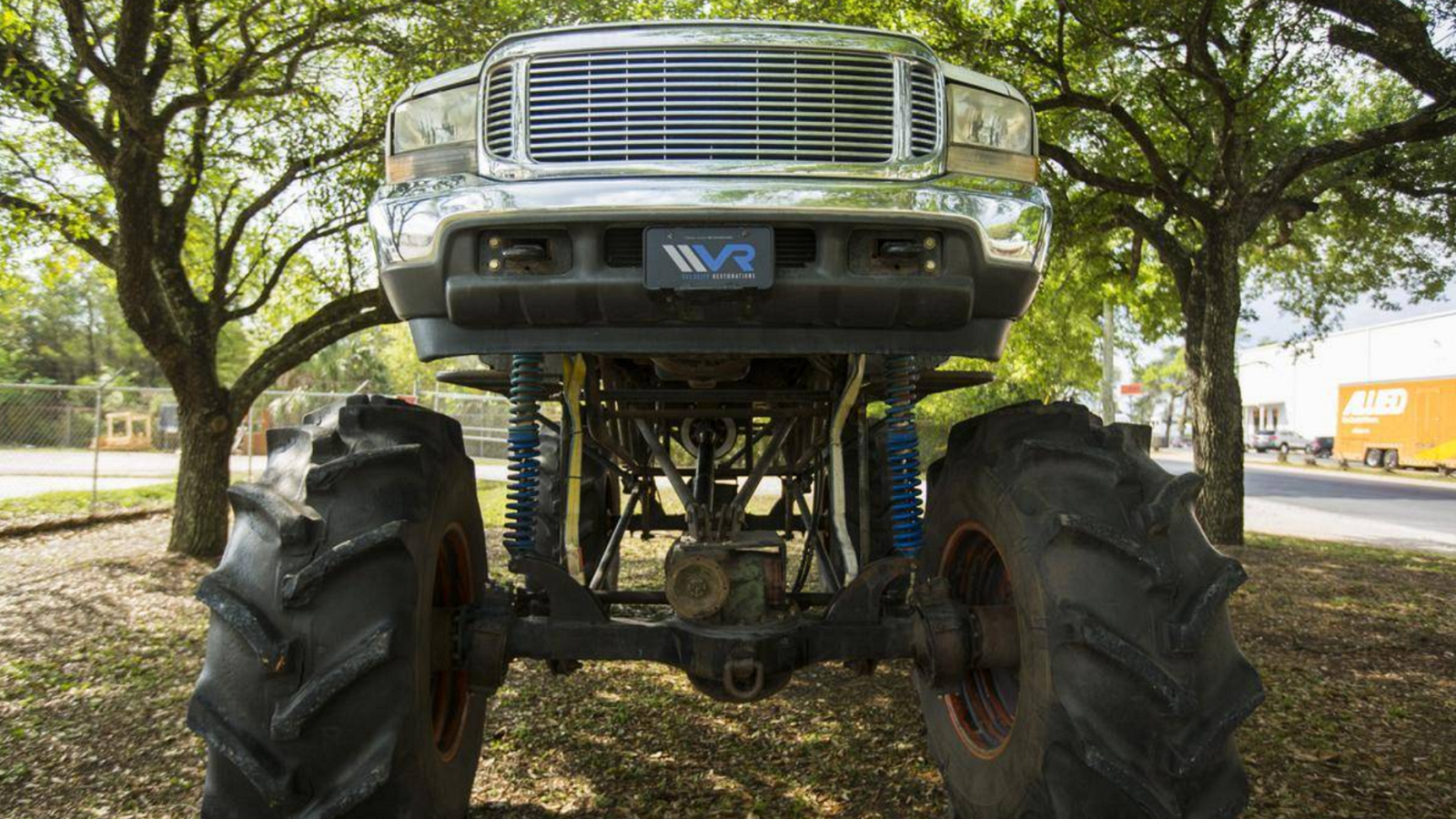 This Ford F-350 is obviously built to conquer any mud pit nature throws at it. But with a trailer-loaded overall height of 10ft 5in, it's also perfectly road legal. So you can trailer it to events without having to worry about taking out any low-hanging overpasses.