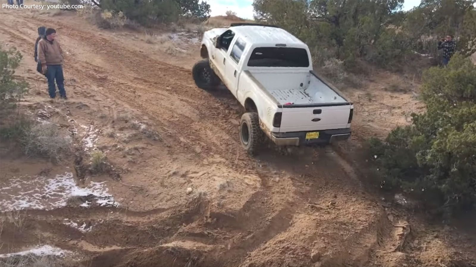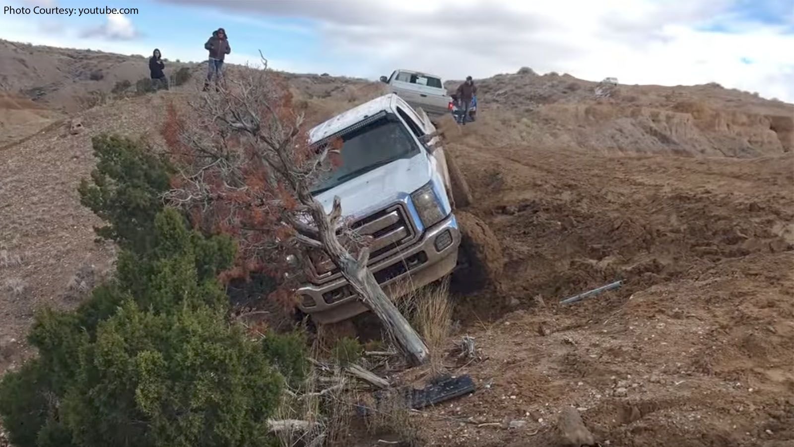 The first rule of off-roading, for your own safety and to preserve the areas we all love to play in, is to stick to the trail. Before the video has even started, the F-250 driver seems to have strayed off of the more well worn trail, and only by about the width of the truck. Unfortunately for him, he did it at a soft, muddy spot, that was steeply sloped downhill. There was also a tree.
