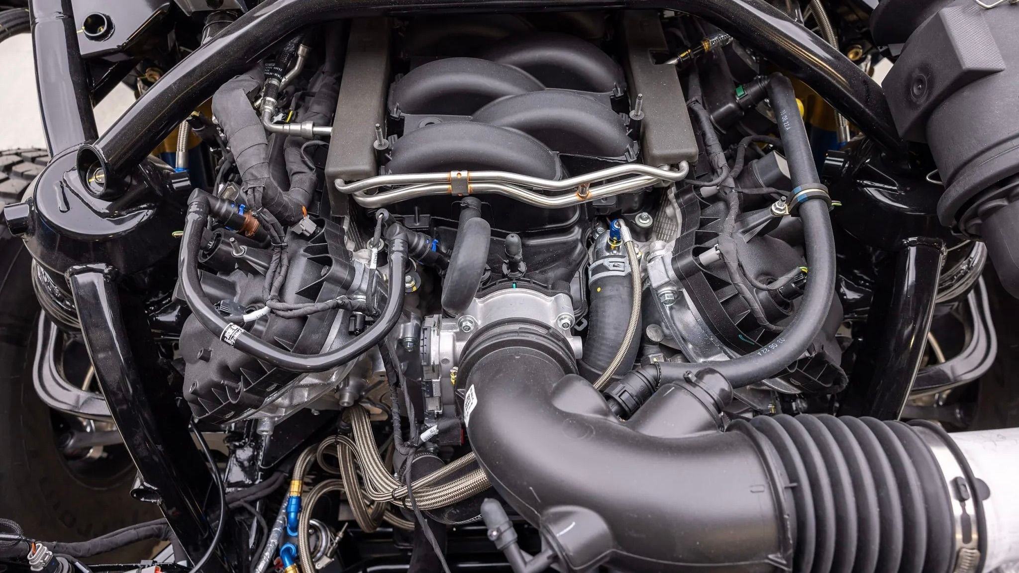 Under the hood, one won't find some sort of turbocharged four- or six-cylinder engine, but rather, Ford's venerable 5.0-liter Coyote V8 in naturally aspirated guise. It sends power to all four wheels via a 10R80 ten-speed automatic transmission. The DR is also equipped with an electronically shifted dual-range transfer case, plus locking differentials at both ends with 4.70 gears.