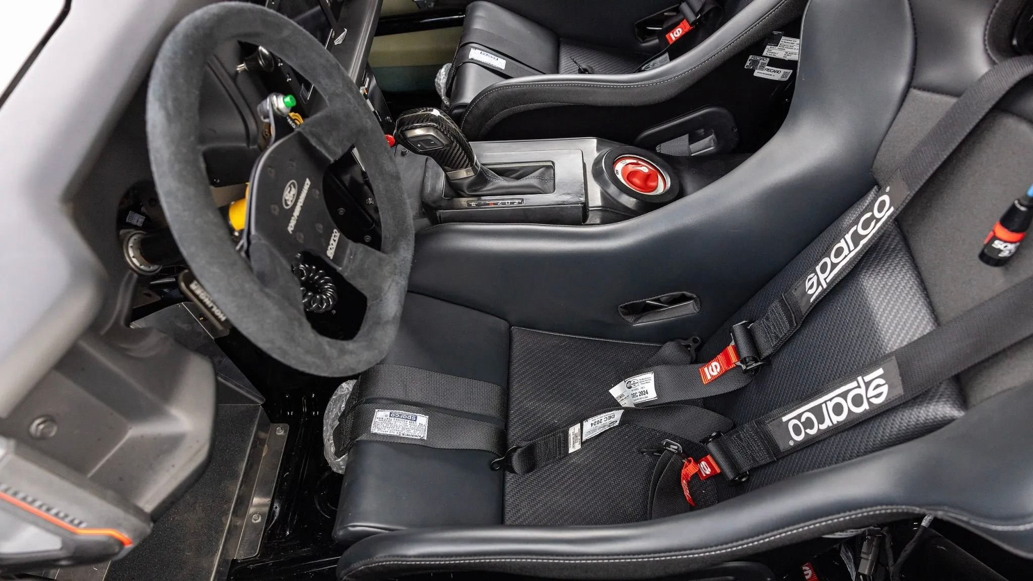 The same goes for the business-focused cabin, which is stuffed with racing stuff like Recaro Pro Racer ORV-XL seats with Sparco safety harnesses, a MoTeC data acquisition system, a Ford Performance Sparco steering wheel, a Kenwood two-way radio, a PCI intercom system, and a MoTeC C187 display - but no window glass, just safety nets in this case.