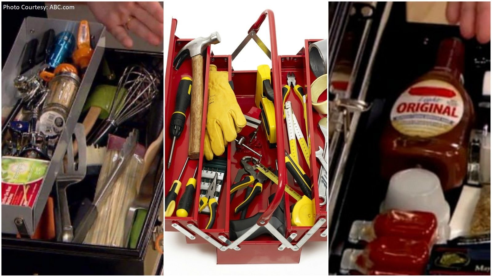 There's nothing worse than digging through a box full of cooking utensils trying to find the one thing you need. Especially if you've already consumed a few frosty beverages. Save yourself the time and frustration (and possibly a skewered finger) by organizing all of your cooking tools in a handheld toolbox before you head out. Place spatulas, bottle openers, tongs (two pairs, one for raw meat), and basting brushes in one compartment. Stuff another with trash bags, paper towels, wipes, sunscreen, and a couple of ponchos in case the weatherman was wrong about the forecast (again). Place sauces, spices, and seasonings in another drawer. Use an empty cardboard six pack carrier for bottles of ketchup and hot sauces.