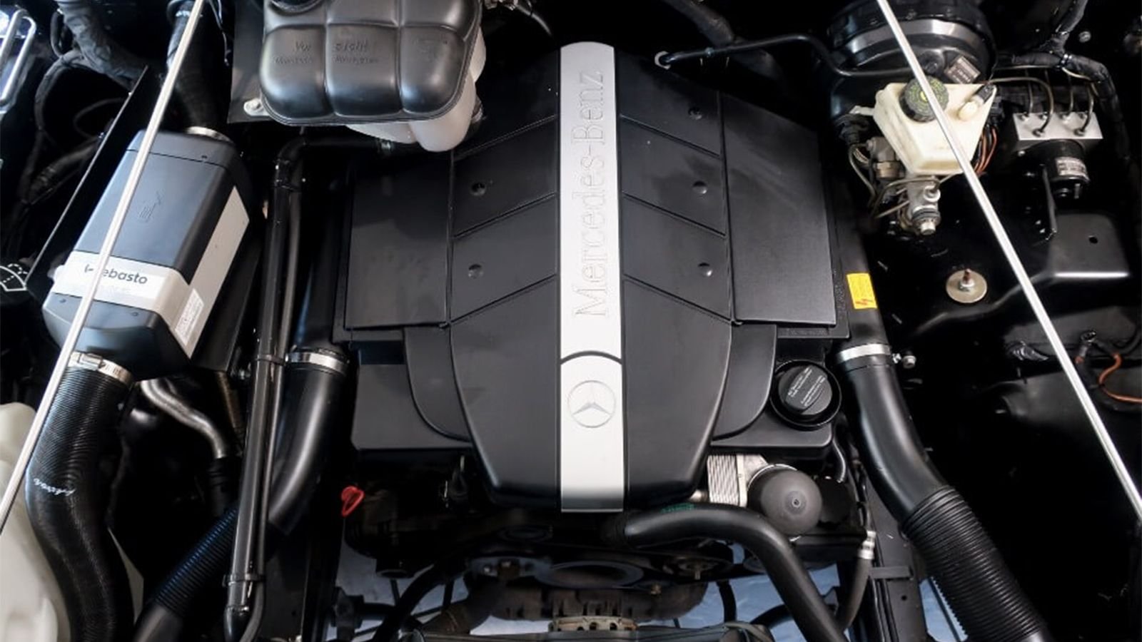 The German V6 replaces the 239 Ford Flathead V8 that the F-100 originally came with. In addition to the engine, the 5G-Tronic automatic transmission, SLK axles, brakes, power steering, and exhaust system have been brought over from the Mercedes.