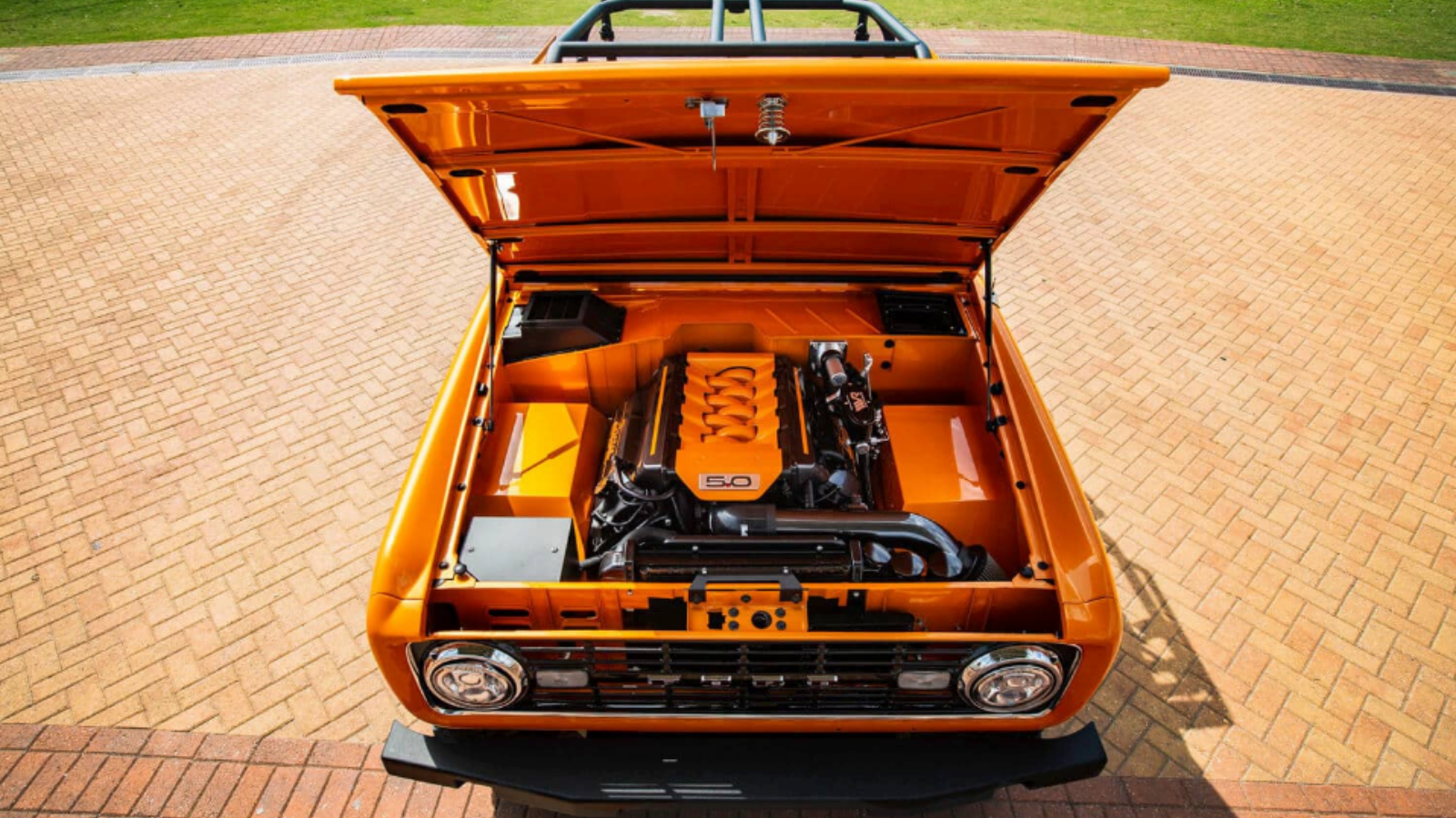 Don’t let this Bronco’s cool seaside persona fool you —it’s got plenty of power and capability too, whether your heading for a post-surf beer or heading into the mountains for a camping weekend. The truck’s new 5.0 Coyote engine powers an exclusive serpentine system created and installed by Velocity’s team of engineers and is mated to a new 6R80 6-speed transmission.