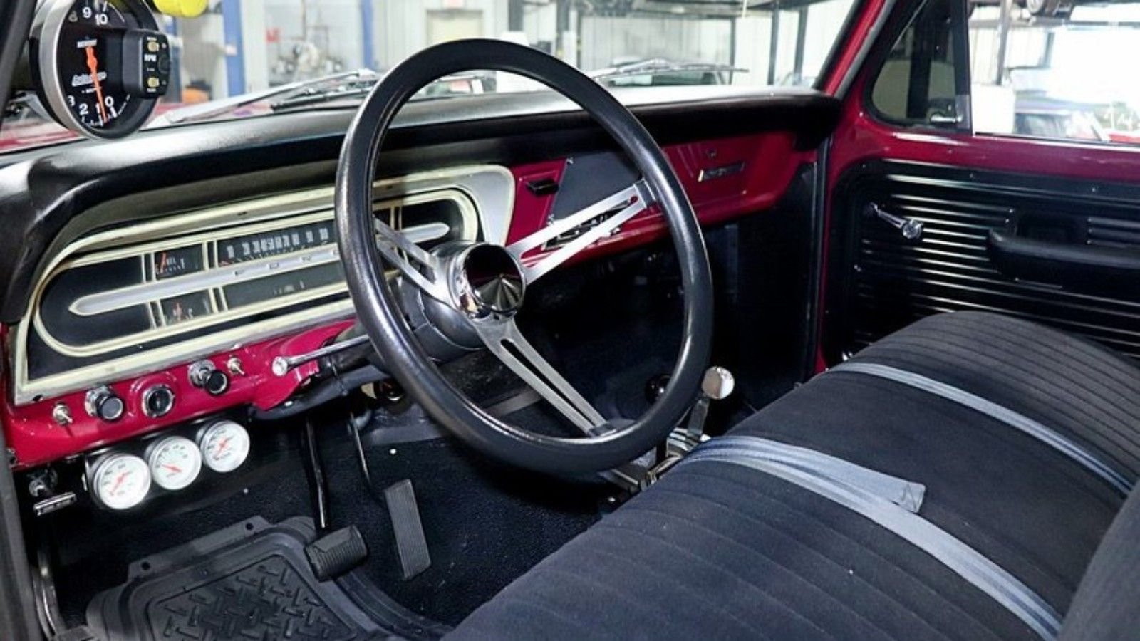 The seller doesn't say whether or not the interior has been restored, but it sure looks like new. There are a few additions here as well, including Autometer gauges and a B&M Pro ratchet shifter.
