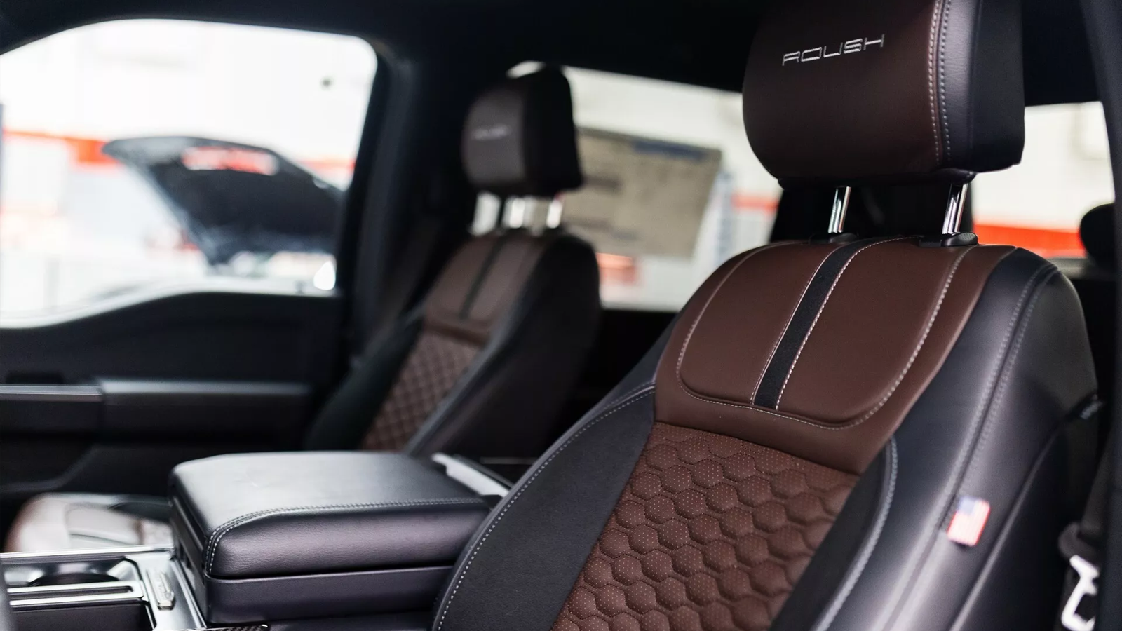 Underneath the surface, Roush has equipped the F-150 with new coilovers, lifting its ride height by 2 inches for improved off-road capability. Coupled with 20-inch wheels clad in all-terrain tires and an active exhaust system, the truck offers a blend of rugged performance and refined driving experience.