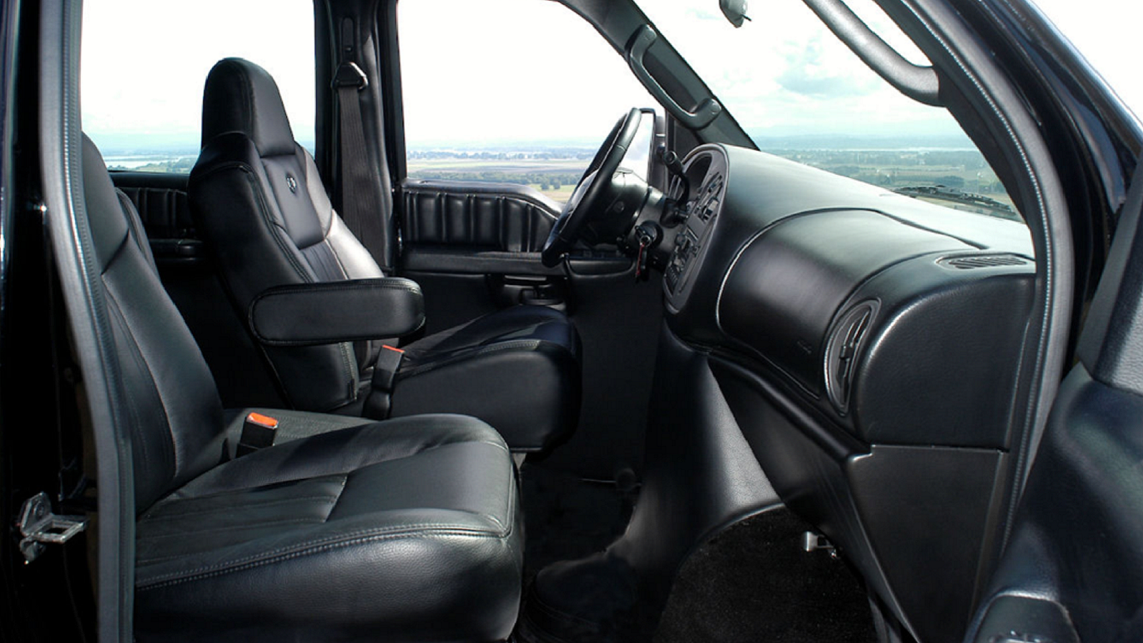 Inside, the Shotgun van is fitted with a host of Ford F-Series Harley-Davidson edition parts including the captain's chairs, dash, center consoles, and even the gas and brake pedals.