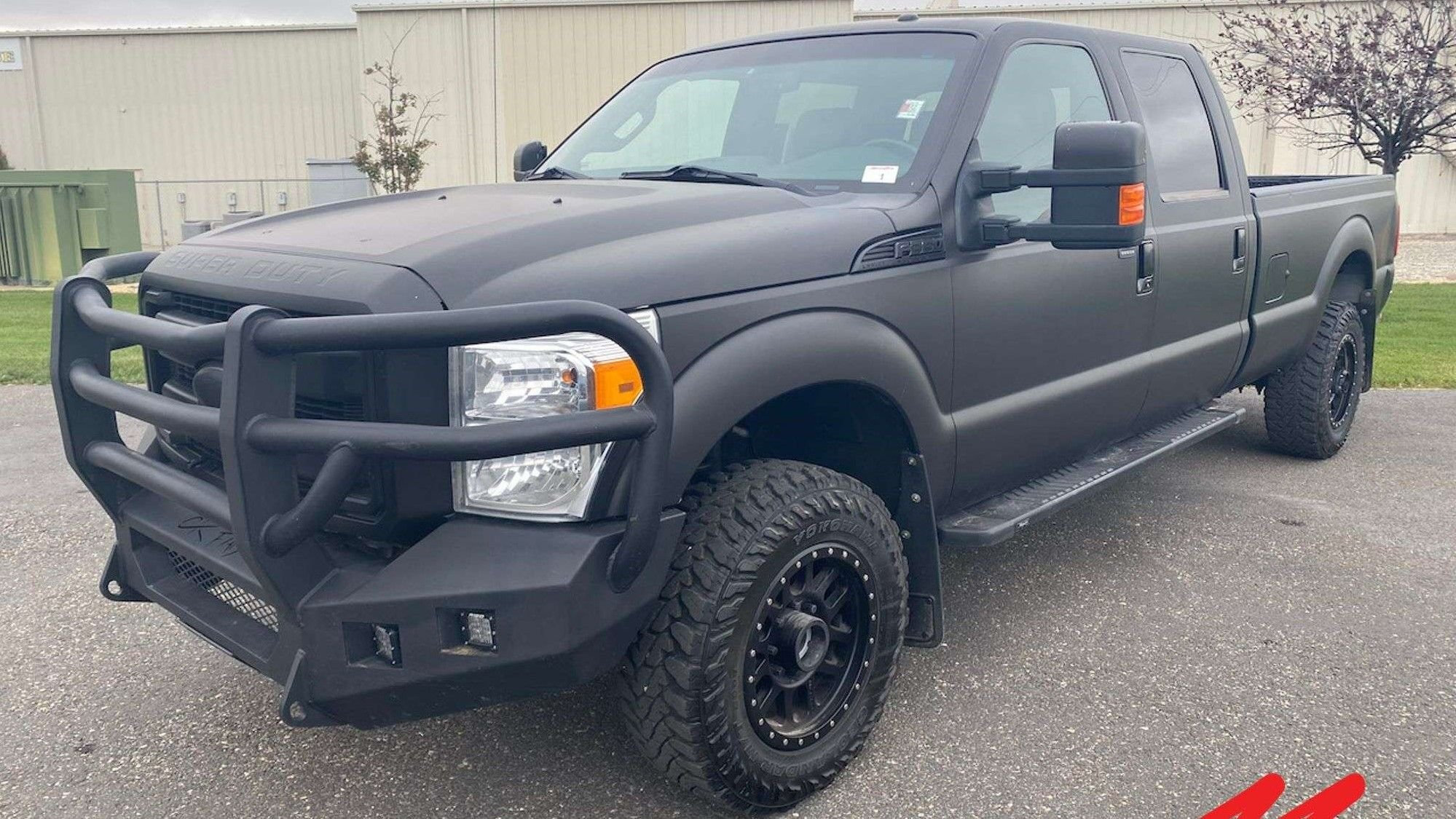 These vehicles were all sold back to the Ford dealership West originally purchased them from after his well-publicized split with Kim Kardashian. The dealer wisely put them up for auction, where they're garnering tremendous interest Each of these vehicles is fitted with a matte black wrap, but each is also pretty similar in terms of modifications. That's true of this 2016 F-350, which features the exact same mods as the 2017 F-250.