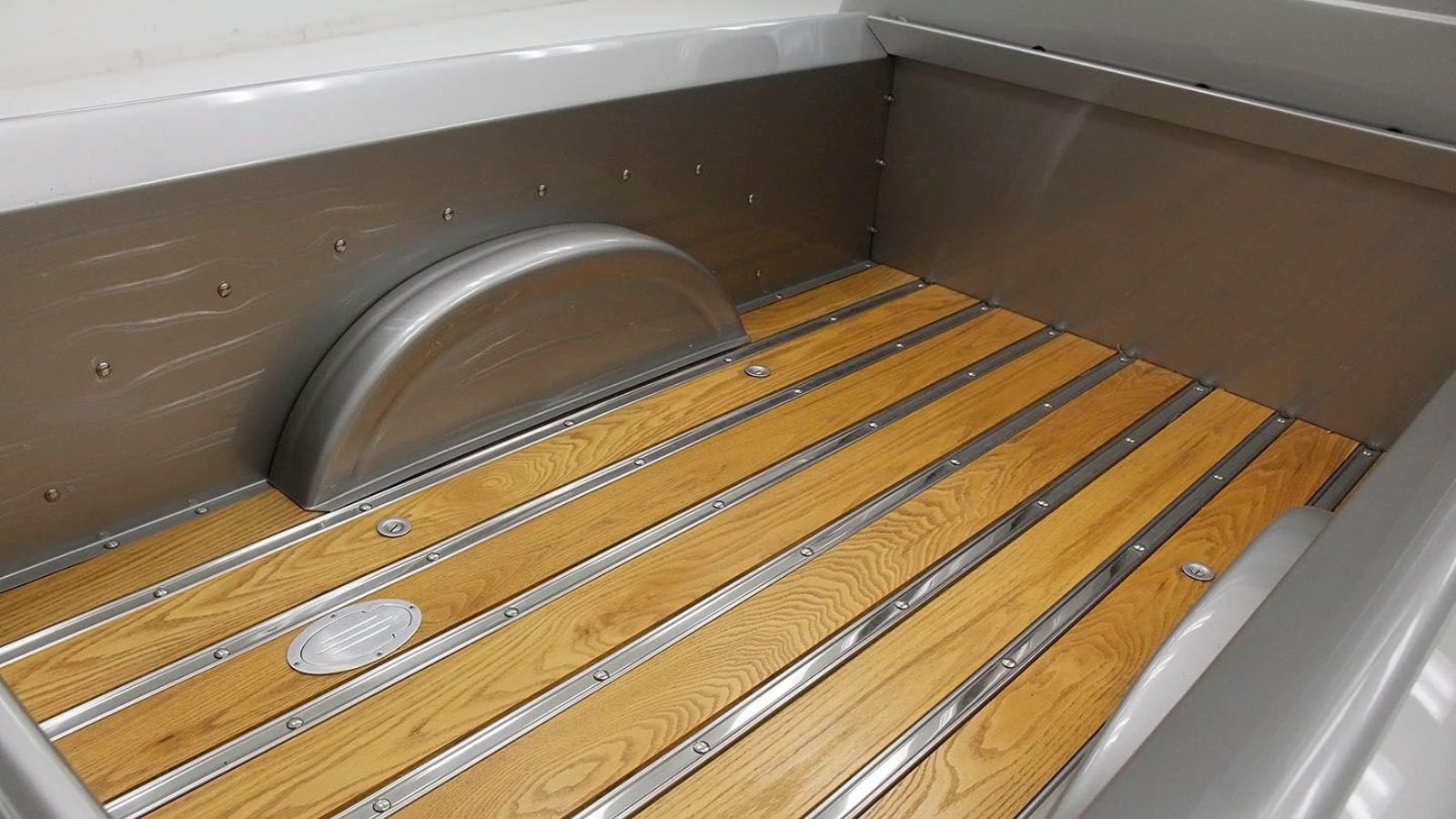 A truck bed is just a truck bed, right? That aid, the bed dimensions of the 1956 Ford F-100 actually has a story to tell. That’s because this model year’s cargo bed, measuring 6 1/2 feet by 20 inches, would be the same sized bed used by Ford Motor Company in pickup trucks until the 1980s. This truck’s particular bed has been rebuilt and adorned with oak paneling for supreme styling.