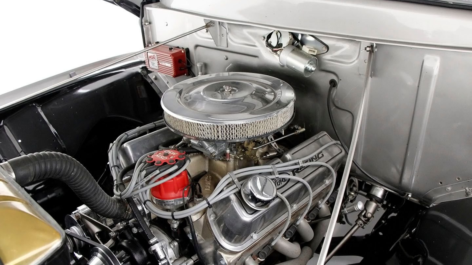 In 1956 the Ford Motor Company made a 223ci six-cylinder the standard engine in its F-100 series. The Silver Bullet, however, is powered by a 302ci based 347 Stroker Crate engine affixed to a single 4-barrel Holley carb that feeds fuel and air through an Edelbrock intake —significantly more powerful than its predecessor. A 3-speed C4 automatic transmission and a 2800 Stall converter are also featured.