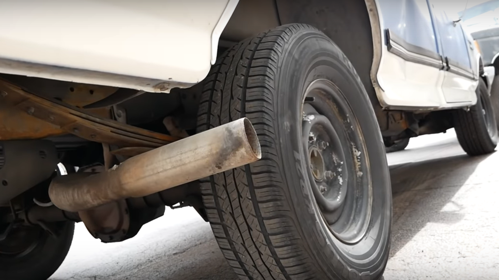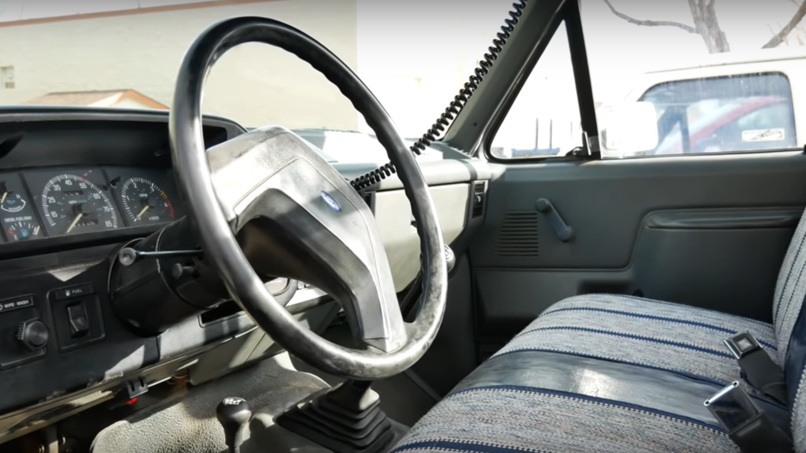 While today's diesel trucks all come equipped with turbos, the lack of boost is one of these older F-Series pickup's best attributes. "There's a common theme between these two trucks," TFLT notes. "Basically, giant motors that are kind of overbuilt. And also not very high horsepower. There's no boost going into it, it's not seeing a lot of stress. So that's a big part of the reason why it can run for this long. This truck is essentially a tractor - a street-legal tractor."