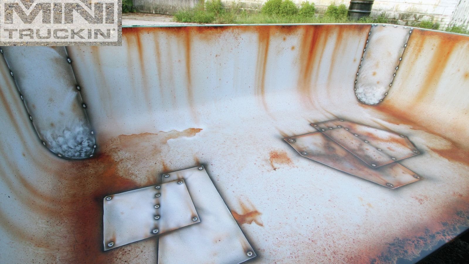 Let's say you build a truck nice enough to have it featured in Mini Truckin'. What comes next? Where do you go from there? Do you take it to shows for a while then sell it and start a new project? Not if you're Ronnie Wells. After his 1992 Ford Ranger, wearing blue marbleized paint, appeared in that publication, he stripped it down and started all over again. As Wells told Truck Trend: "I stripped the truck down to raw steel by using aircraft stripper (had to do this to get rid of the gobs of extremely thick marble paint). I dug out all the body filler and started over. And as far as the airbrush work, I wanted to something I haven't seen before—a nasty looking illusion of decayed metal."