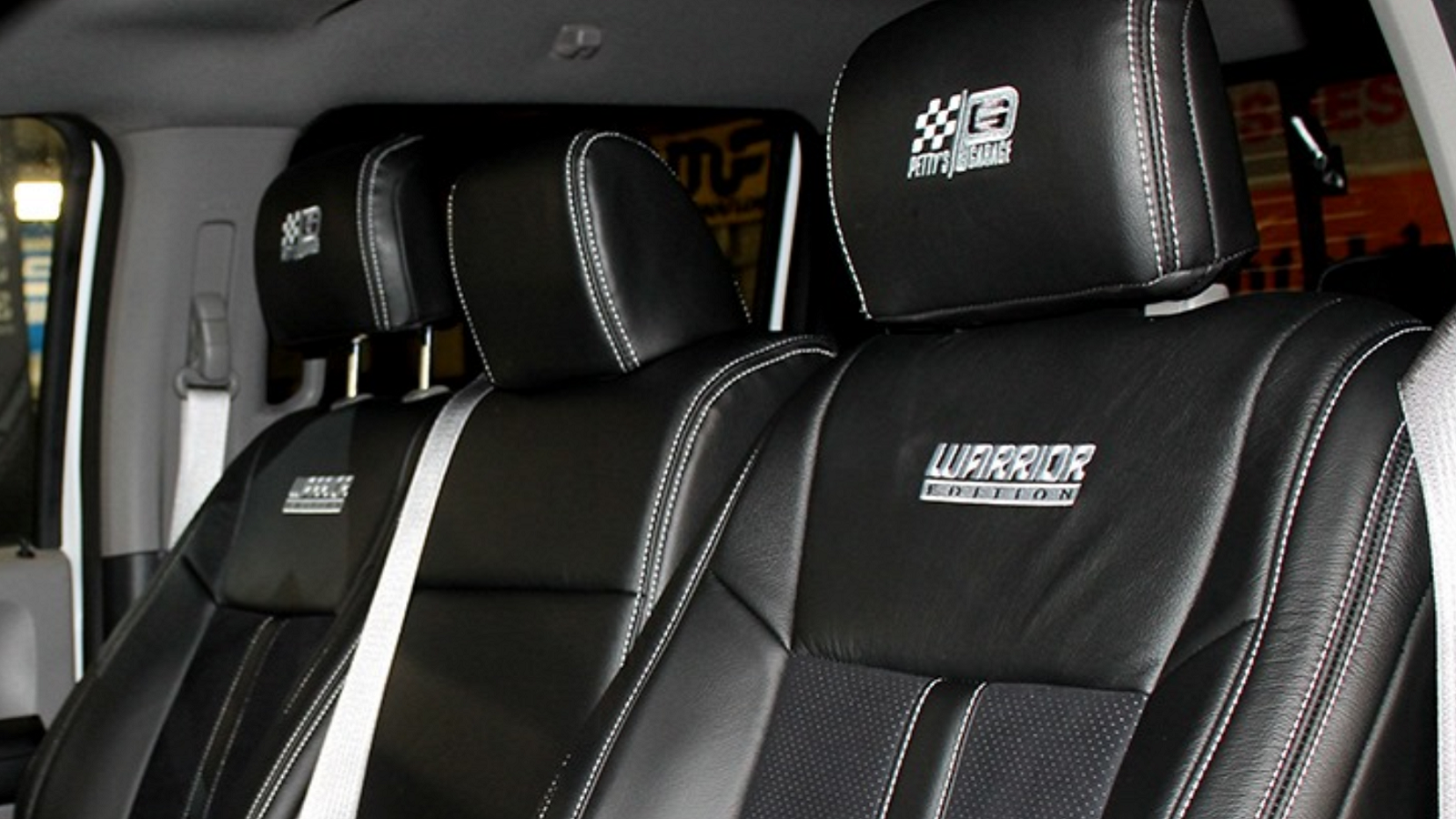 Of course, everyone (including you) will know you're driving something special based on appearances alone. The Warrior F-150 sports a 2-inch leveling kit, 20-inch Fuel wheels, and off-road rubber. Custom graphics and embroidery rep Petty's Garage inside and out. And the Petty Blue brake calipers are a nice, subtle touch, too.
