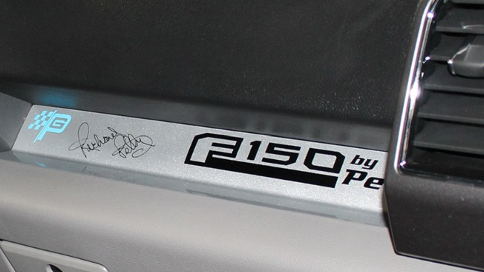And in case anyone doubts Petty's influence over the build, the Warrior F-150 sports a Petty's Garage grille, windshield banner, fender and tailgate badges, hood graphics, and of course, The King's signature right on the dash. The Warrior F-150 starts out as a Super Crew, XLT 4x4 with the 301a equipment package. Color options include Magnetic, Oxford White or Shadow Black, and the exterior Petty graphics are available in four different colors if light blue isn't your thing.