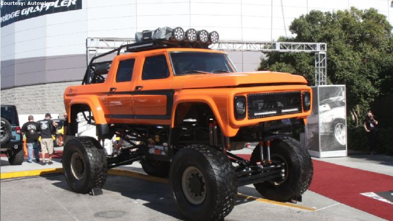 Put to show at the 2016 edition of the Specialty Equipment Market Association (SEMA), this is an aftermarket splice between an F-150 and a Bronco. What we might only call a "mini-monster truck," towers like a beast in the midst of other off-roaders. Just look at the Jeep to the left for a point of reference and you'll know this one isn't messing around.