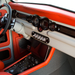 It's virtually impossible to list all the mods done to this Ford's body, but some of the more notable are the one-piece custom front windshield and a big back window from a 1952 F1 pickup. The whole thing is covered in an attractive off-white color inspired by a vintage Porsche.