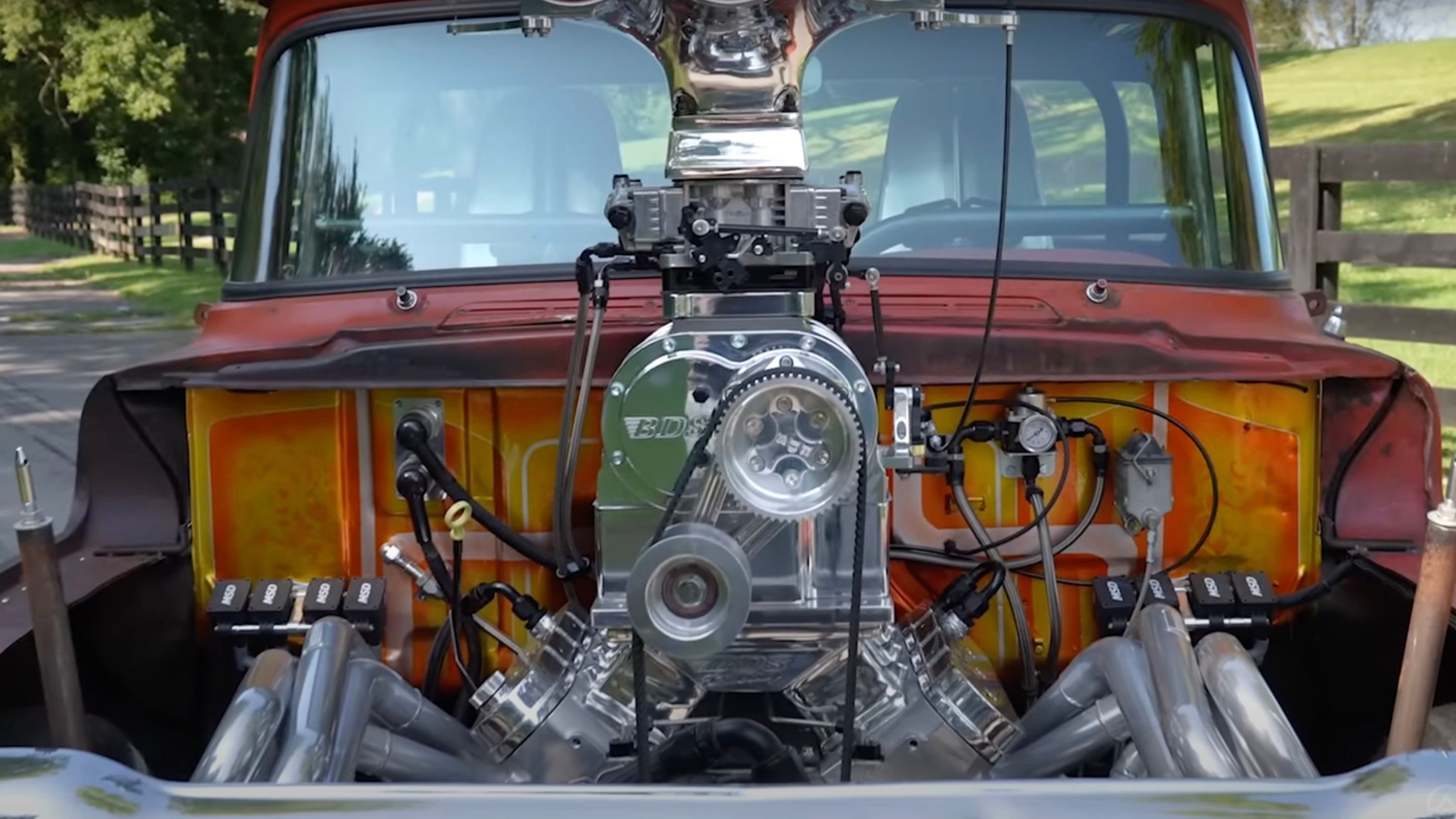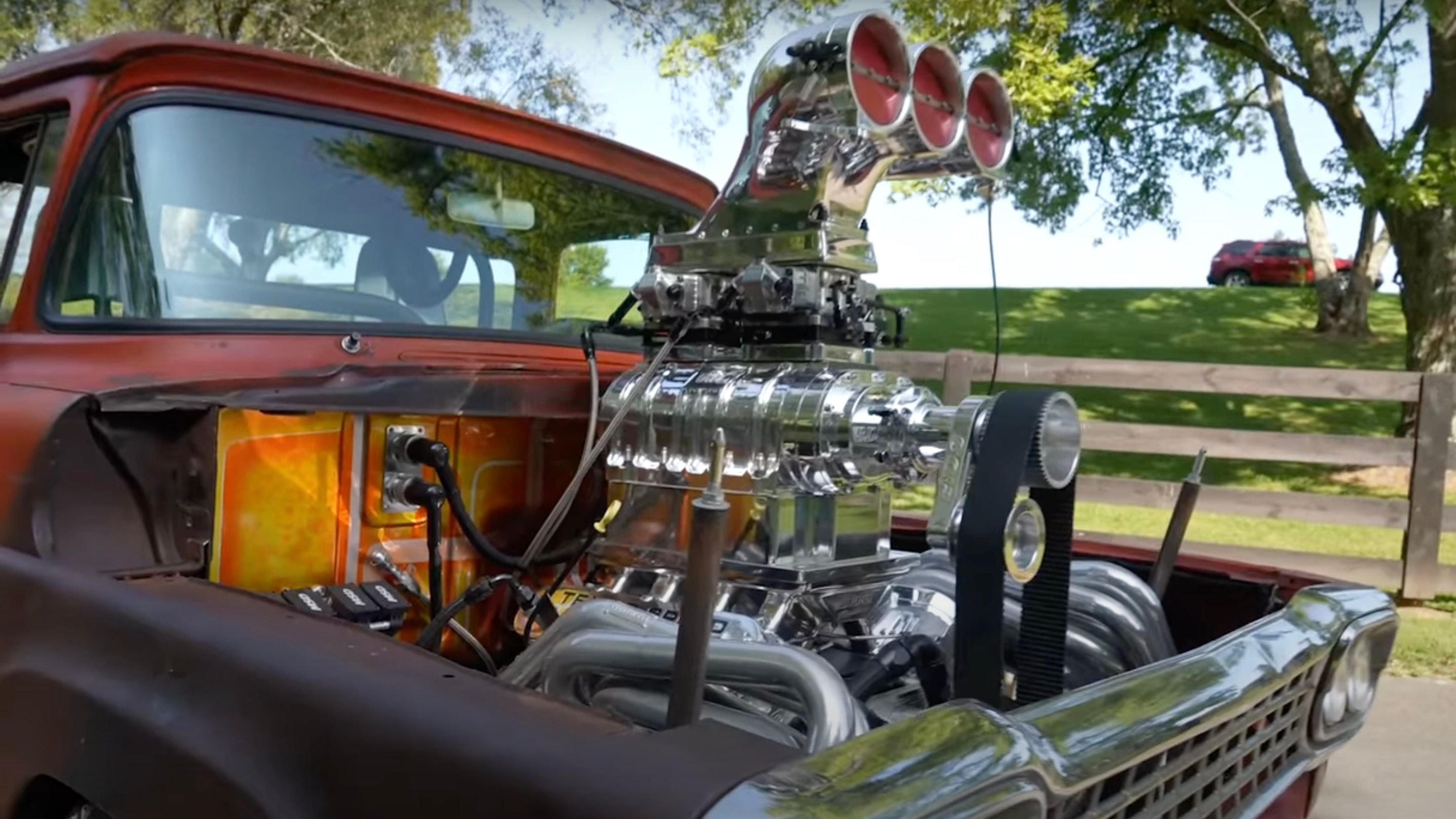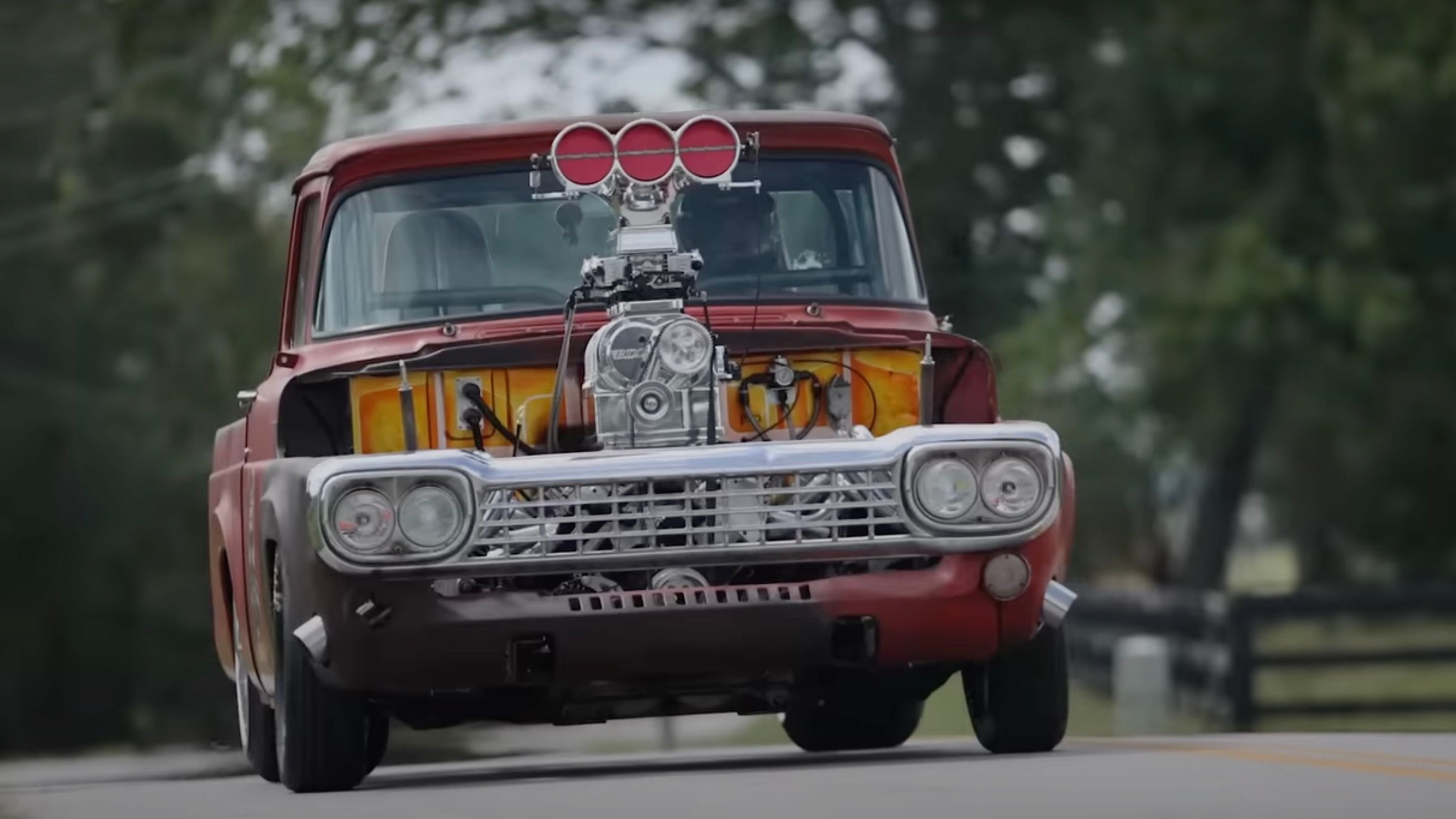 This wild 1958 Ford F-`100 churns out 800 hp from its mile-high supercharged mill.