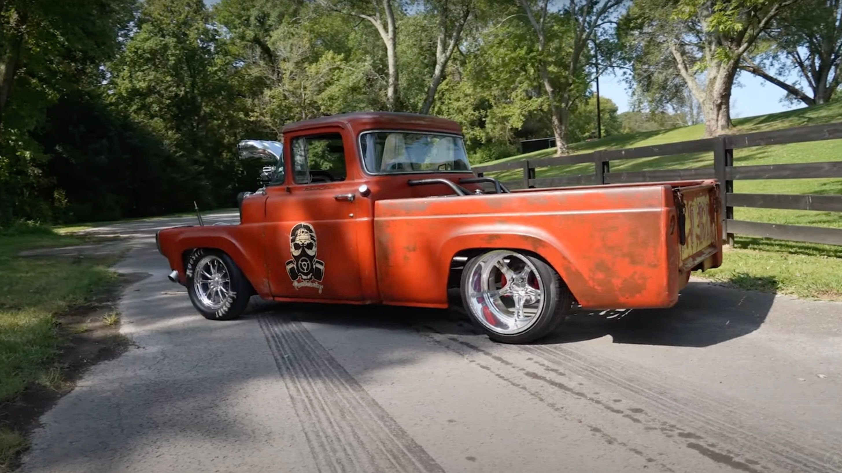 Aside from the gigantic engine that's easily as tall as the roof on this old truck, along with its updated rolling stock, this old F-100 looks pretty much like it did when Zach acquired it, which is to say, covered in patina like an old truck that's been sitting out in a field for a long time. However, in this case, he took more of a "if it isn't broke, don't fix it" approach there.