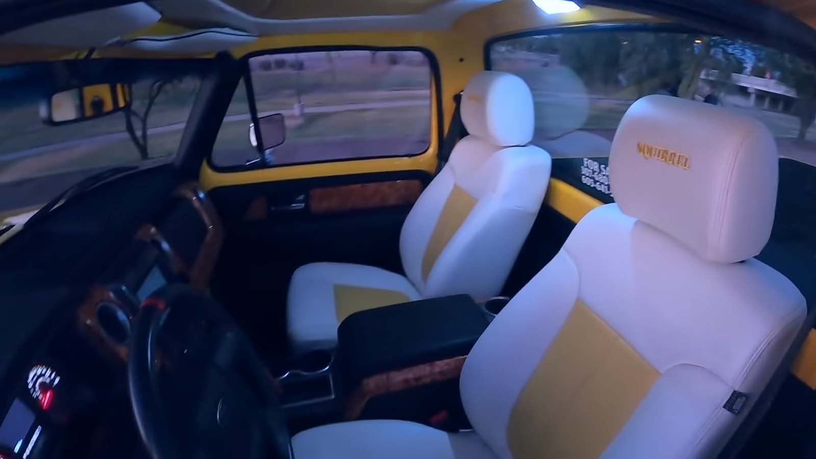 The exterior hides the roaring Raptor underneath rather well. There are few subtle giveaways that this is no ordinary classic Ford truck, such as the pin pad buttons underneath the door handle and the flush-mounted cameras. Even the wheels have the classic style, decorated with the matching yellow and white two-tone of the body.