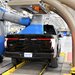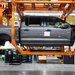 Throughout the process, the autonomous sleds follow a magnetic track that's glued to the floor. The sleds are able to tell when someone is walking in front of them and stop or slow down as needed. There's also a built-in lift on each sled to lift up the truck as needed for easy access by factory workers. When the sleds are stopped, they use charging points in the floor to keep them juiced up and ready to go.