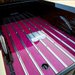 The bed sports inner wheel reliefs with purple tinted wood slats and stainless machined runners made by Jack himself. The reliefs machined into them were done by Mike Curtis at Jack's.Jack and Mike also fabbed the stainless bed strips, filled the stake pockets, made the inner fender reliefs and third member cover. Afterwards, Jack dropped a basecoat of clearcoat black and finished it off with Dennis Ricklefs pinstriping and lettering on the tailgate. Ricklefs also added his pinstriping to several undercarriage components including the lower control arms and oil and transmission pans.