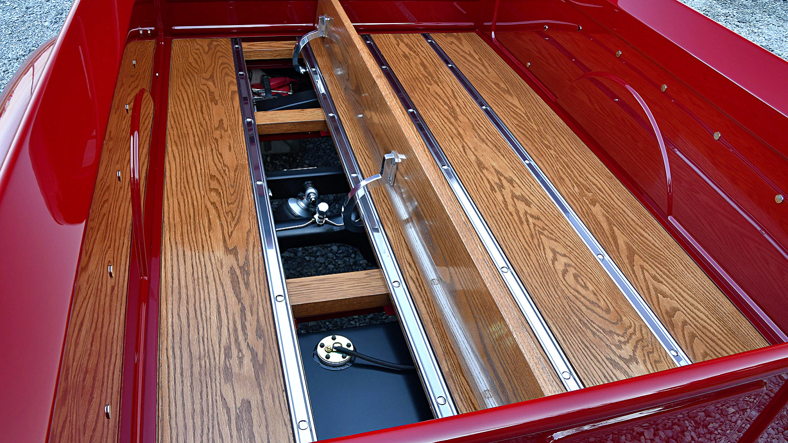 The Ford stayed that way for quite a few years before its next rebuild, which was much more serious this time. With the help of his brother, Jenkins stripped the truck down and painted it Porsche red, redoing just about everything that needed redoing. The result was so good that the F1 took home multiple show trophies in the years after its completion.