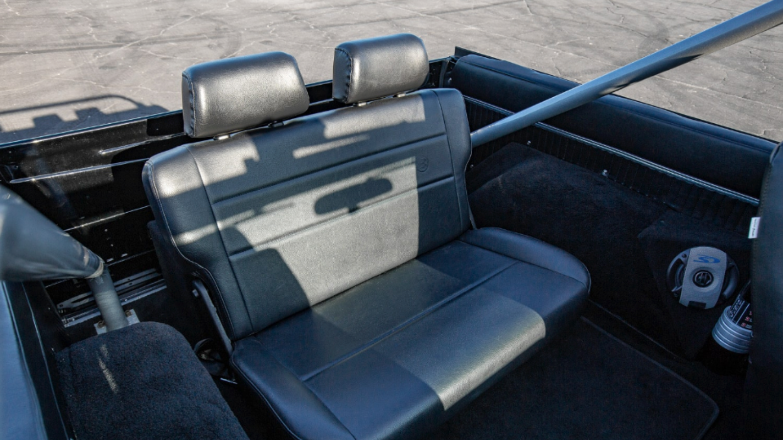 This ’76 Bronco’s rear fold-and-tumble seat allows for ample cargo space or room or comfortable and safe room for two additional passengers on your way to the beach or surf spot. It’s also got a stylish four-point roll cage that can double as a surfboard or mountain bike transport when properly equipped —truly an adventure vehicle that furthers the adventure.
