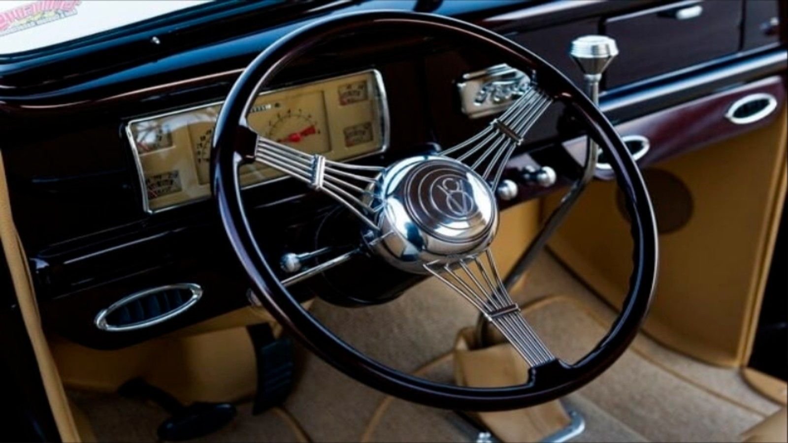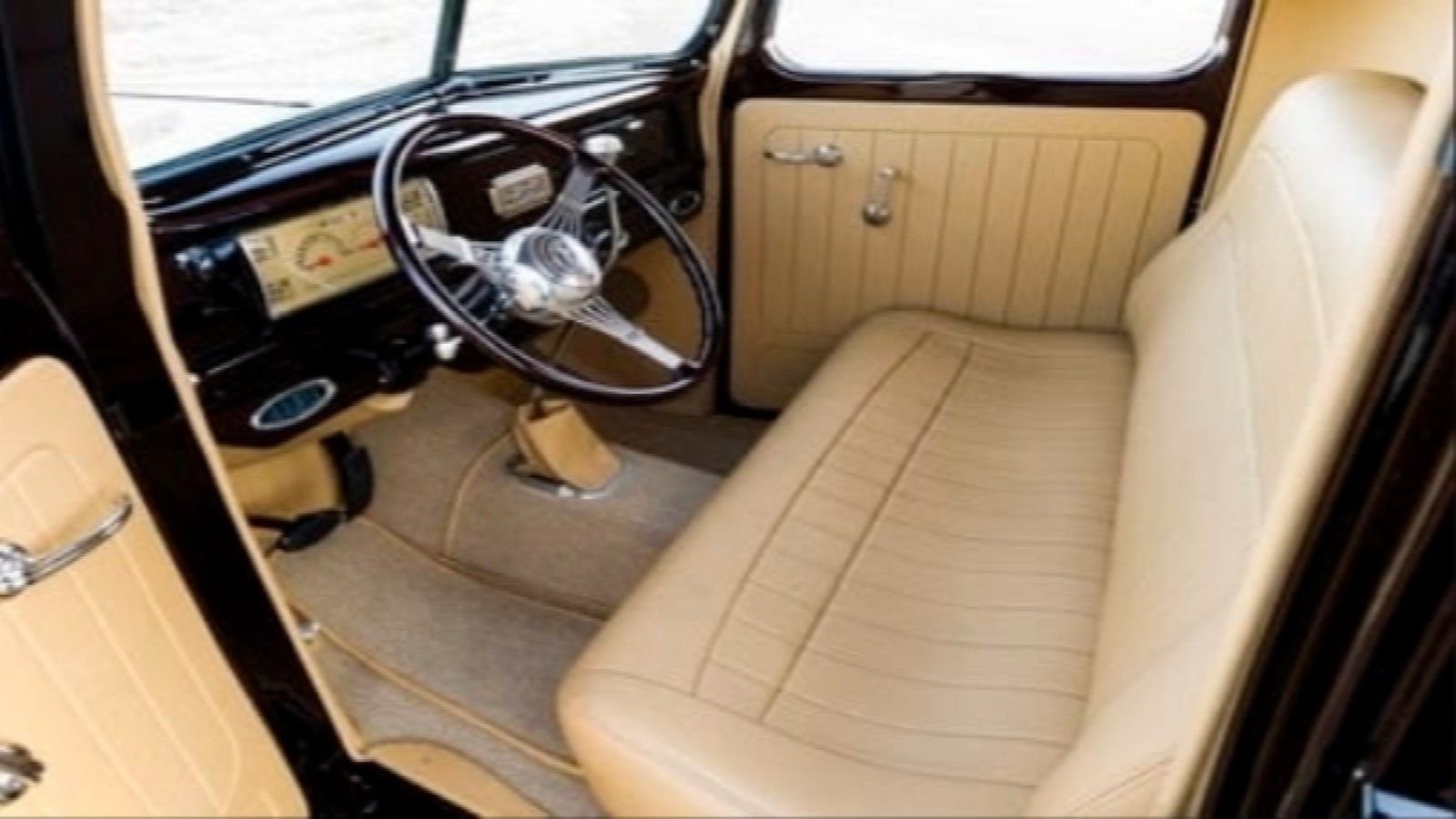 This pickup's tan upholstery by OZ Custom Upholstery screams class. While the inside might look classic, it houses a Vintage Air system, and Rockford Fosgate speakers with Kicker Bluetooth.