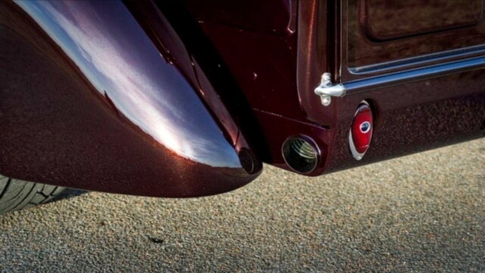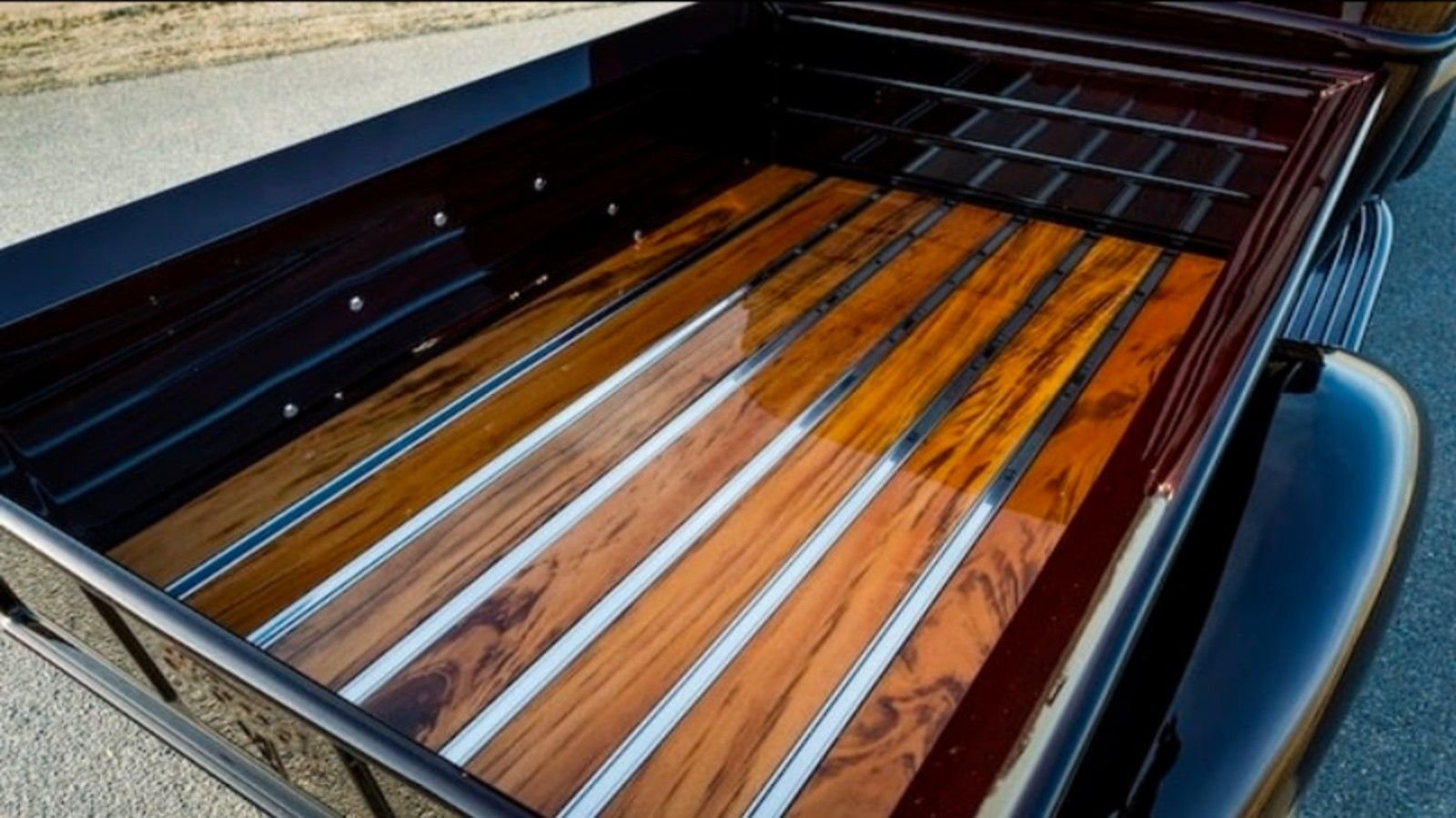 This custom pickup's red paint job, steel body, fenders, and boards will turn heads wherever it goes. If anyone is lucky enough to see this model up close, they'll get a view of its beautiful Tigerwood bed with stainless stripes.