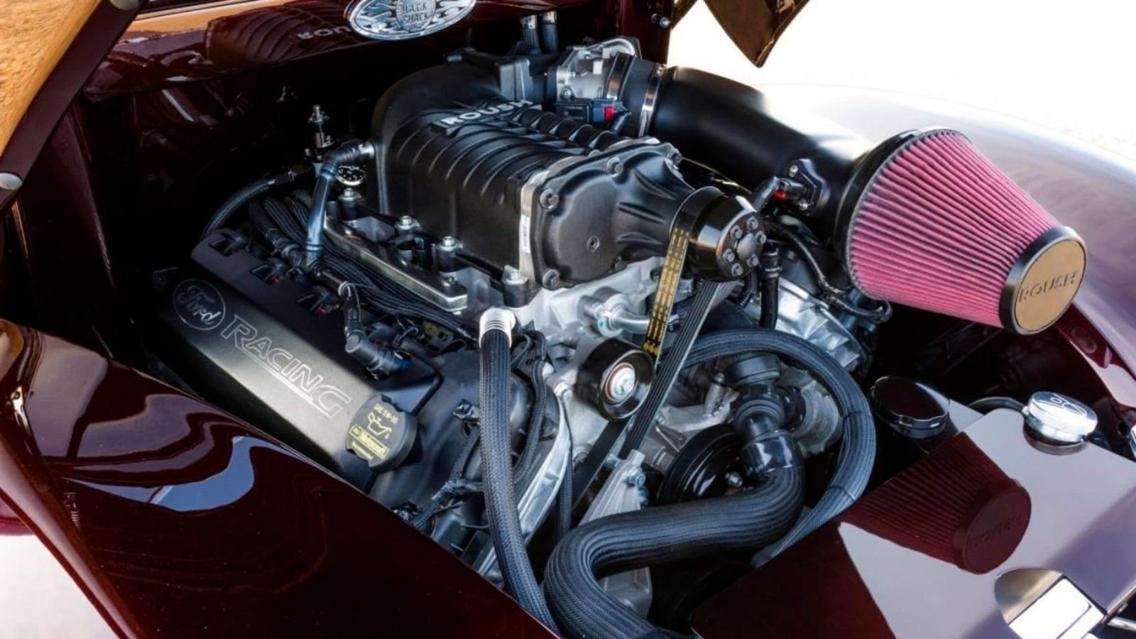 Under the hood sits a beautiful Roush stage III supercharged Coyote engine. This unit doesn't just look good, it pumps out a tire-shredding 675 horsepower. All of this power is sent through a performance automatic street smart 4R70W transmission.