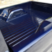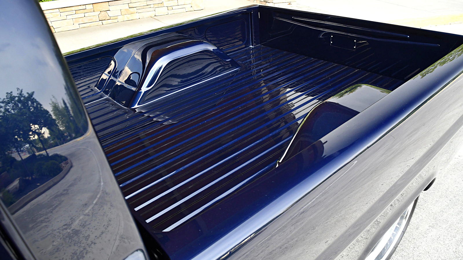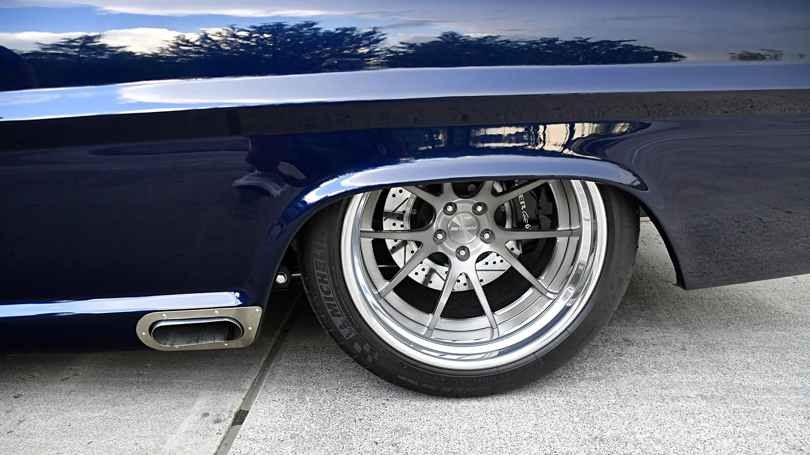 Big wheels and tires were next on the docket, and that need was filled with 19x9" Forgelines up front, 20x12" in the rear, and Michelin rubber all around. The latter of which necessitated a pair of tubs in the bed to make room.