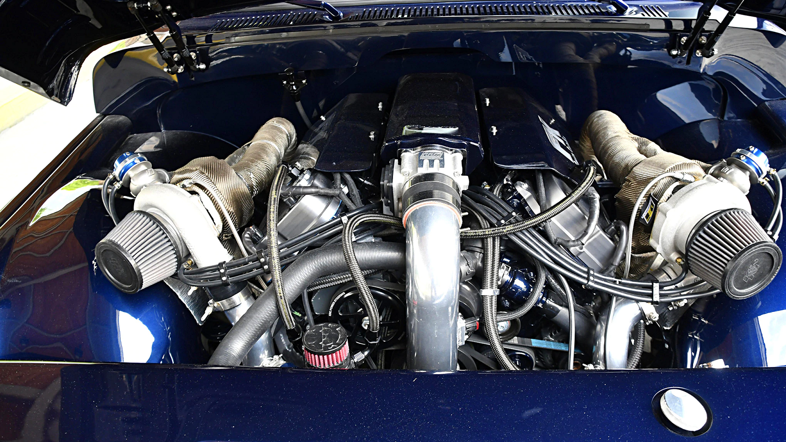 Of course, the engine is a big part of this truck's story. And it started with a 2nd gen Coyote that was fully built and then topped with a pair of Precision 62mm turbos. An a 4R70W four-speed automatic handles the shifts and sends power back to a 9-inch rear stuffed with 3.70 gears.